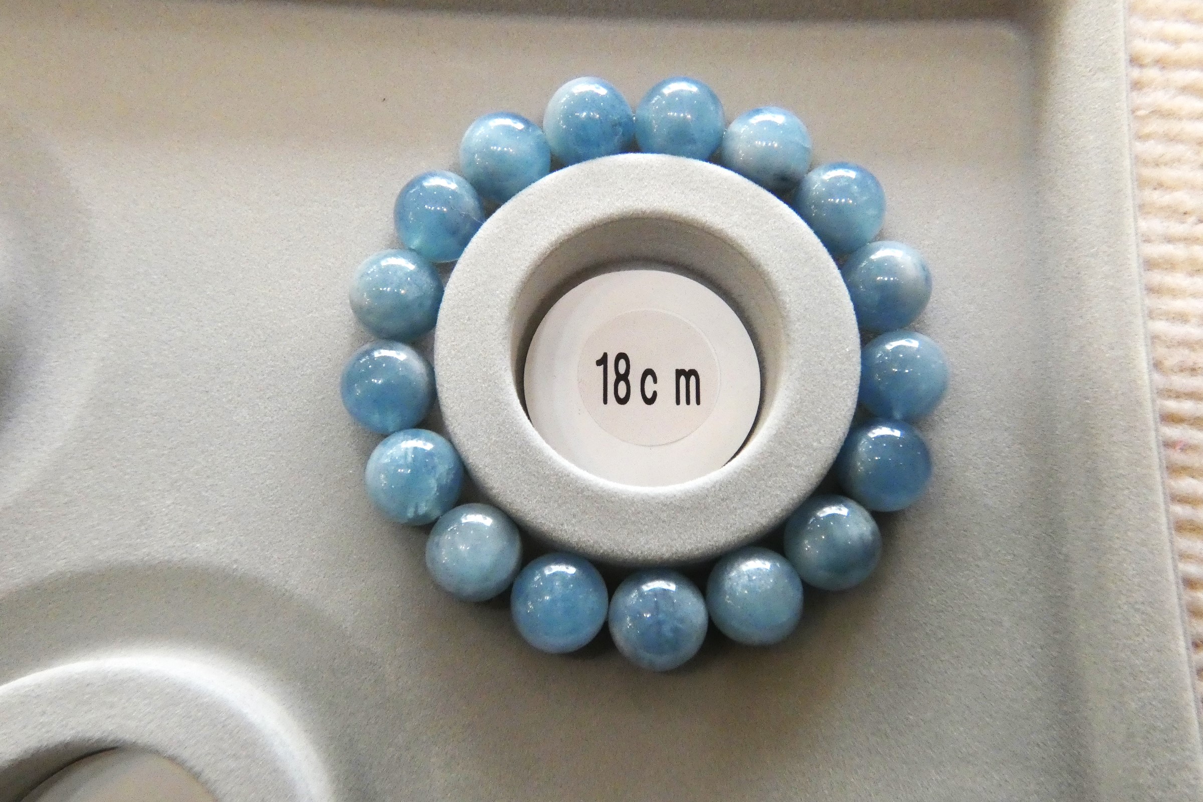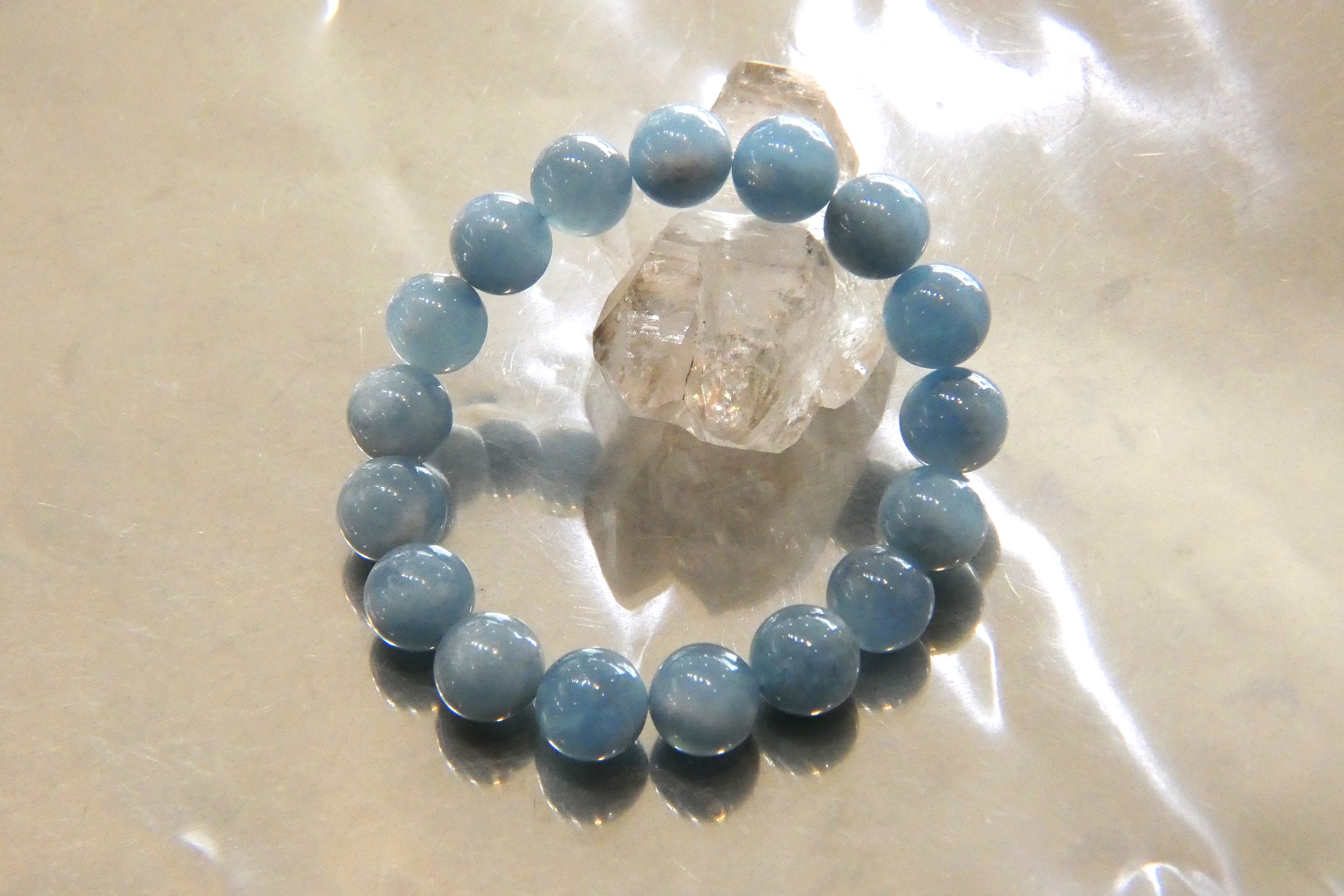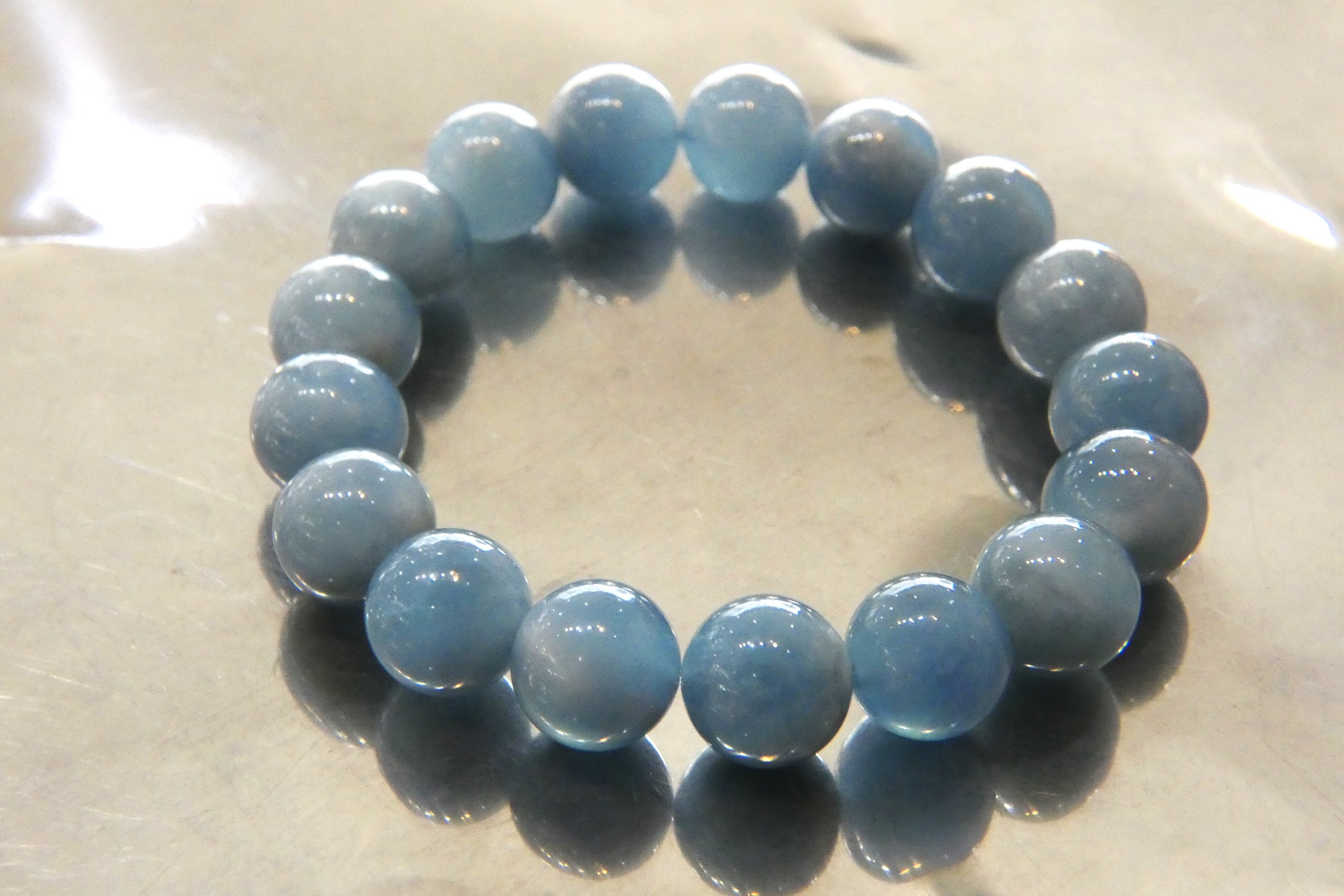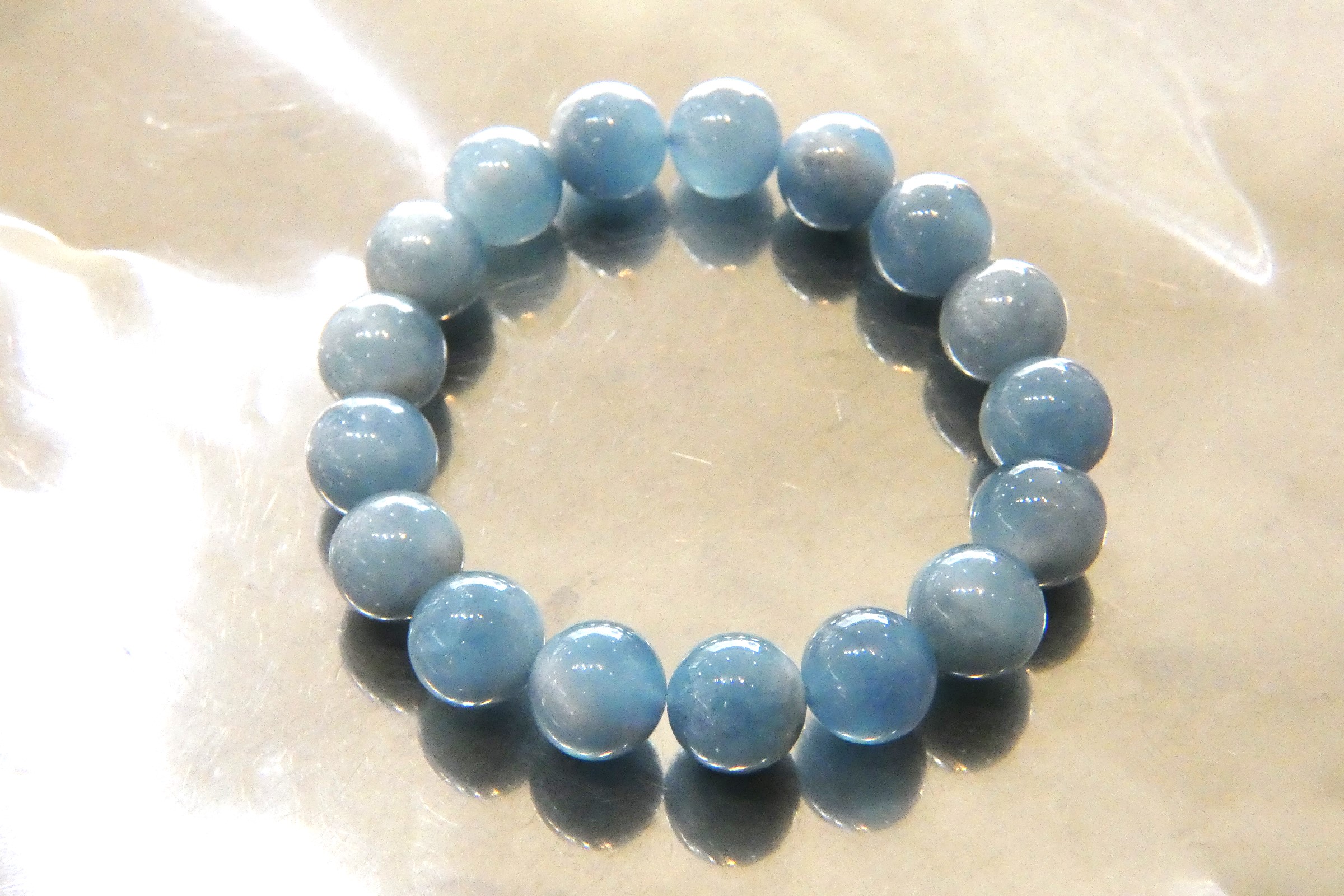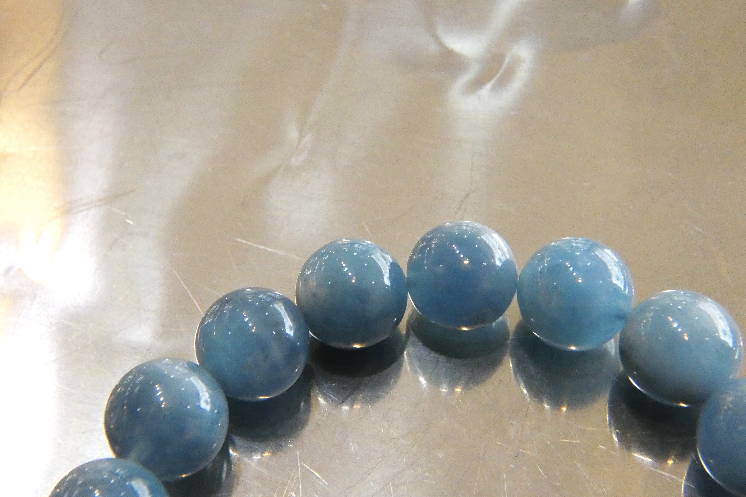 深く優しいブルーに魅せられる、マダガスカル産アクアマリン約12mm珠のブレスレットが入荷いたしました。