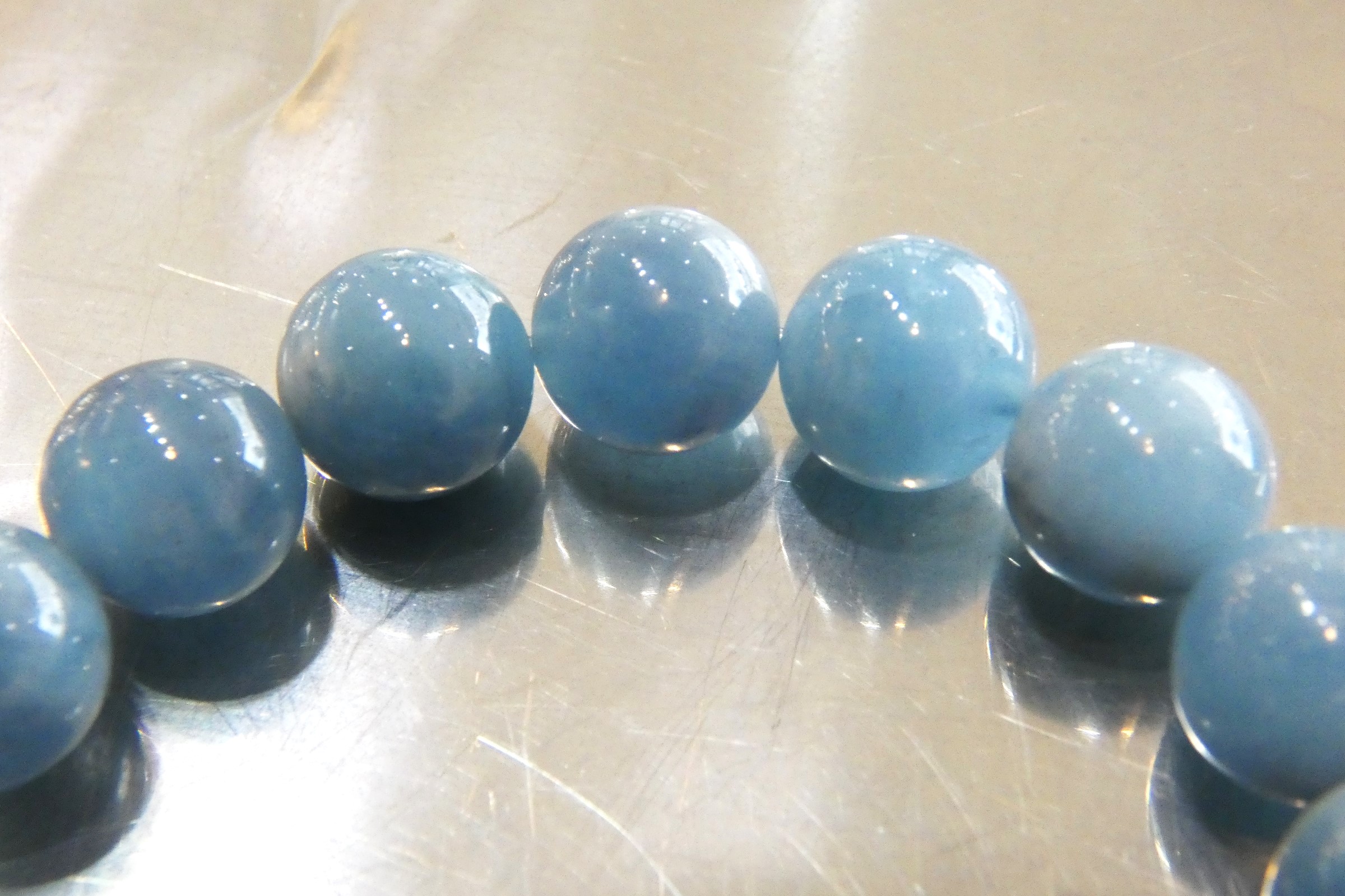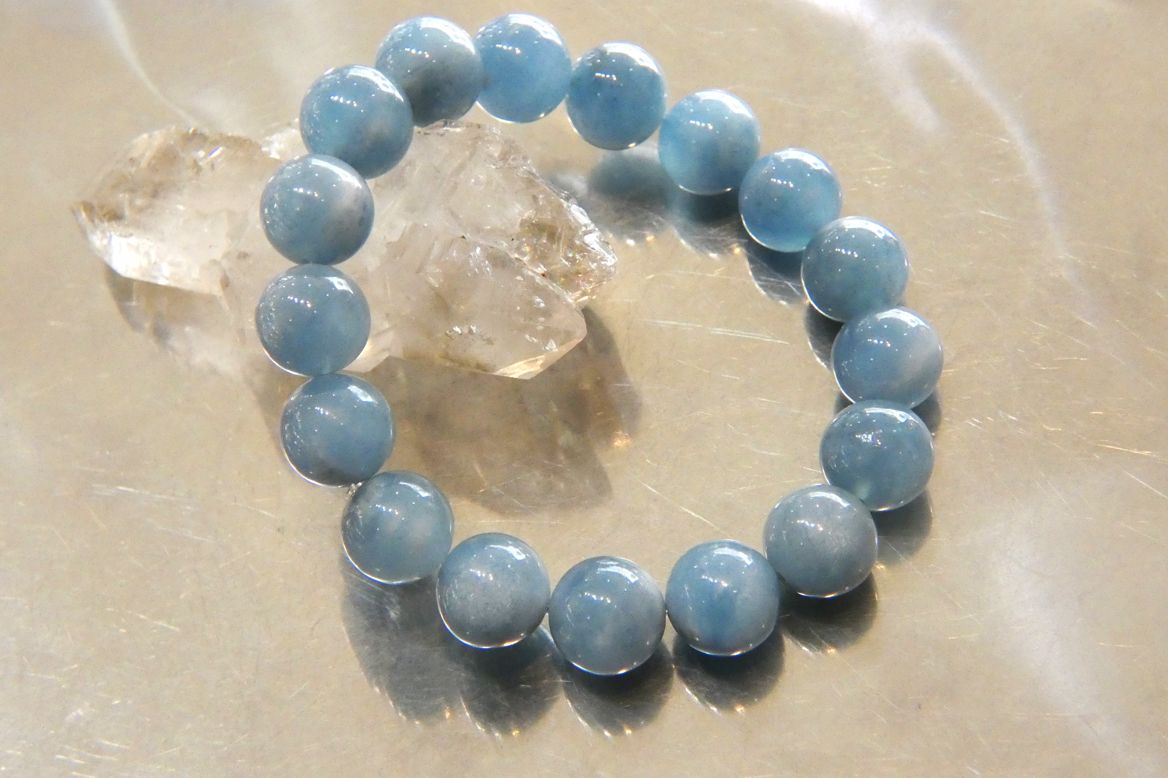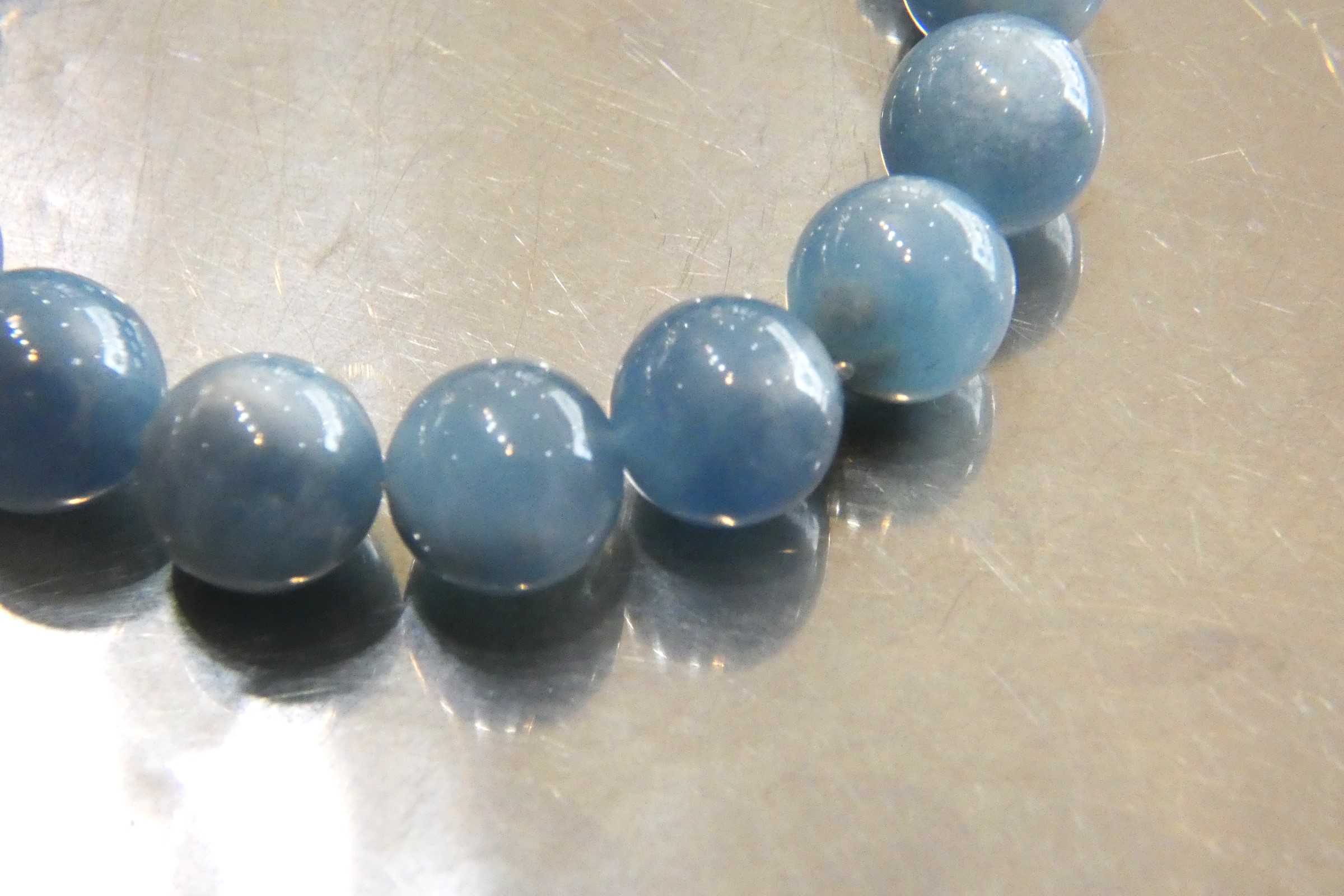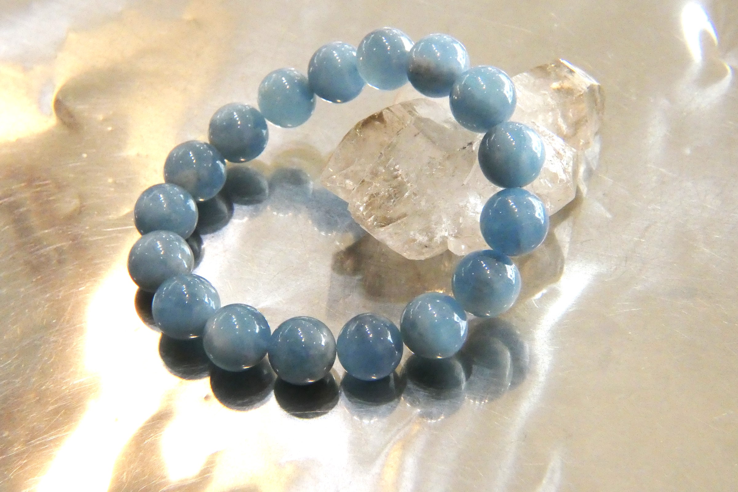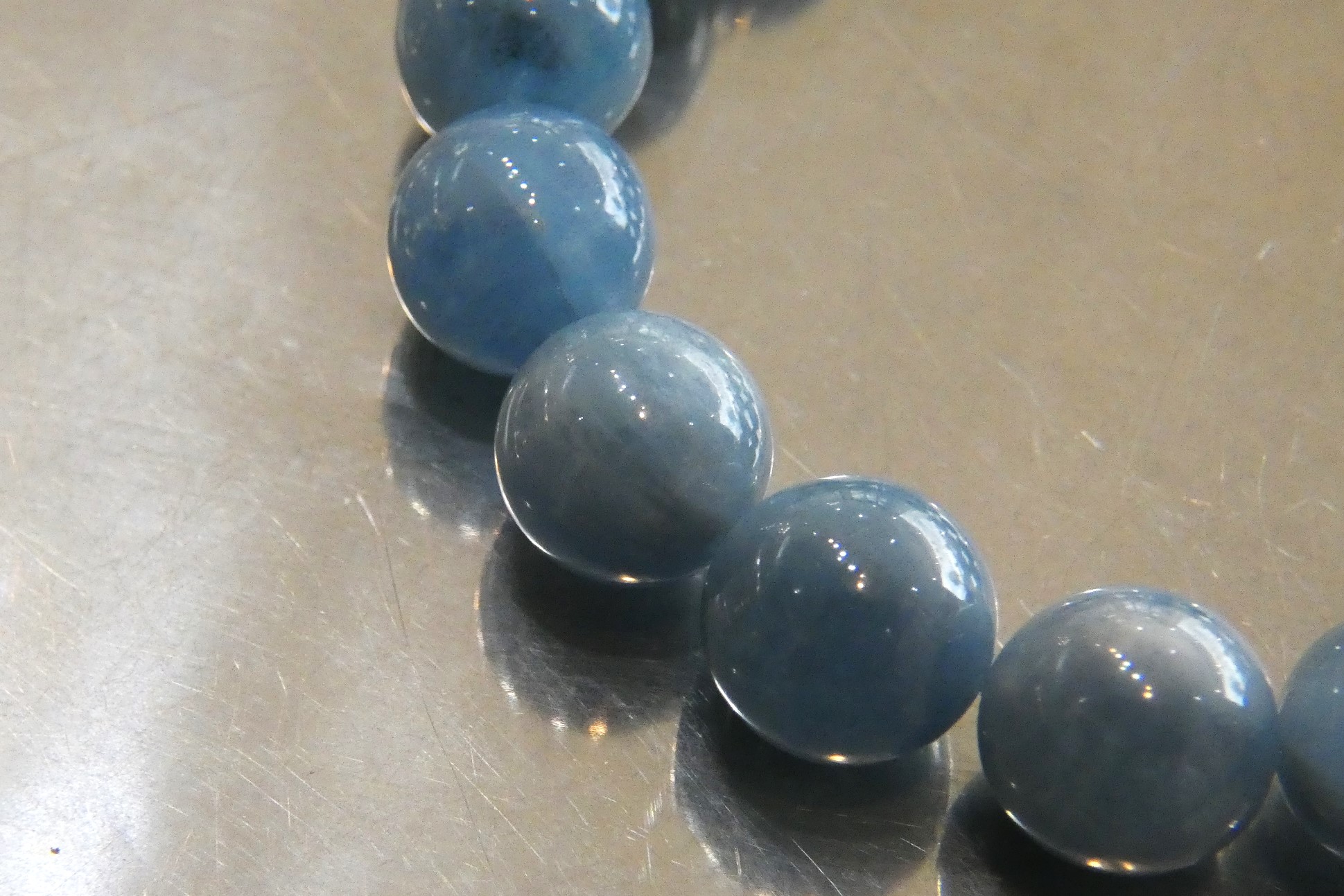 深く優しいブルーに魅せられる、マダガスカル産アクアマリン約12mm珠のブレスレットが入荷いたしました。