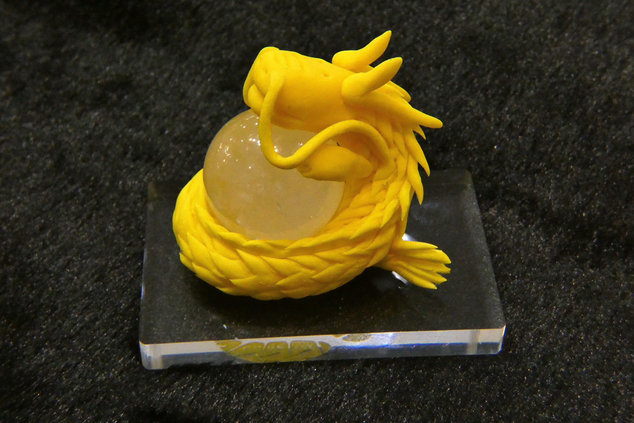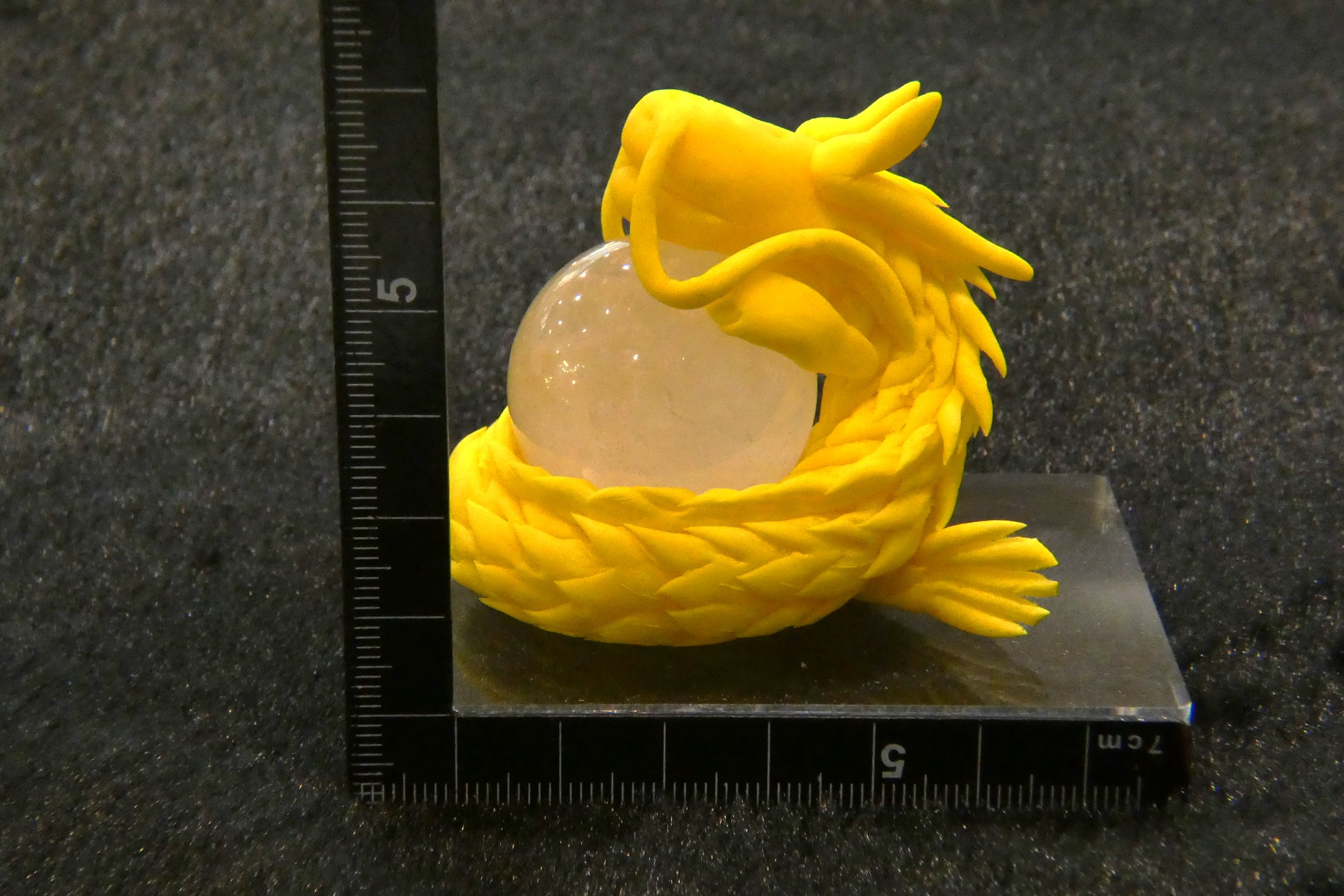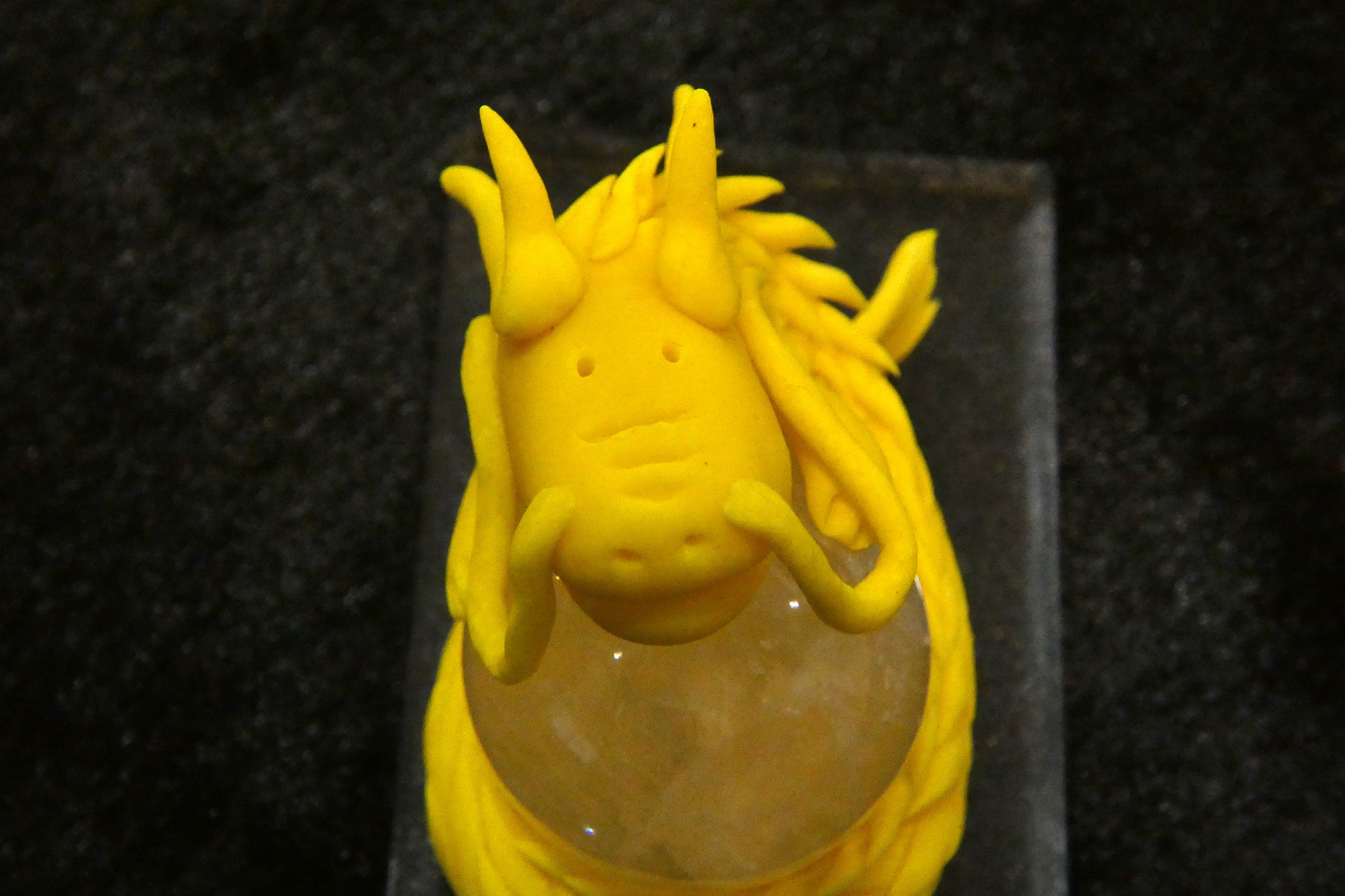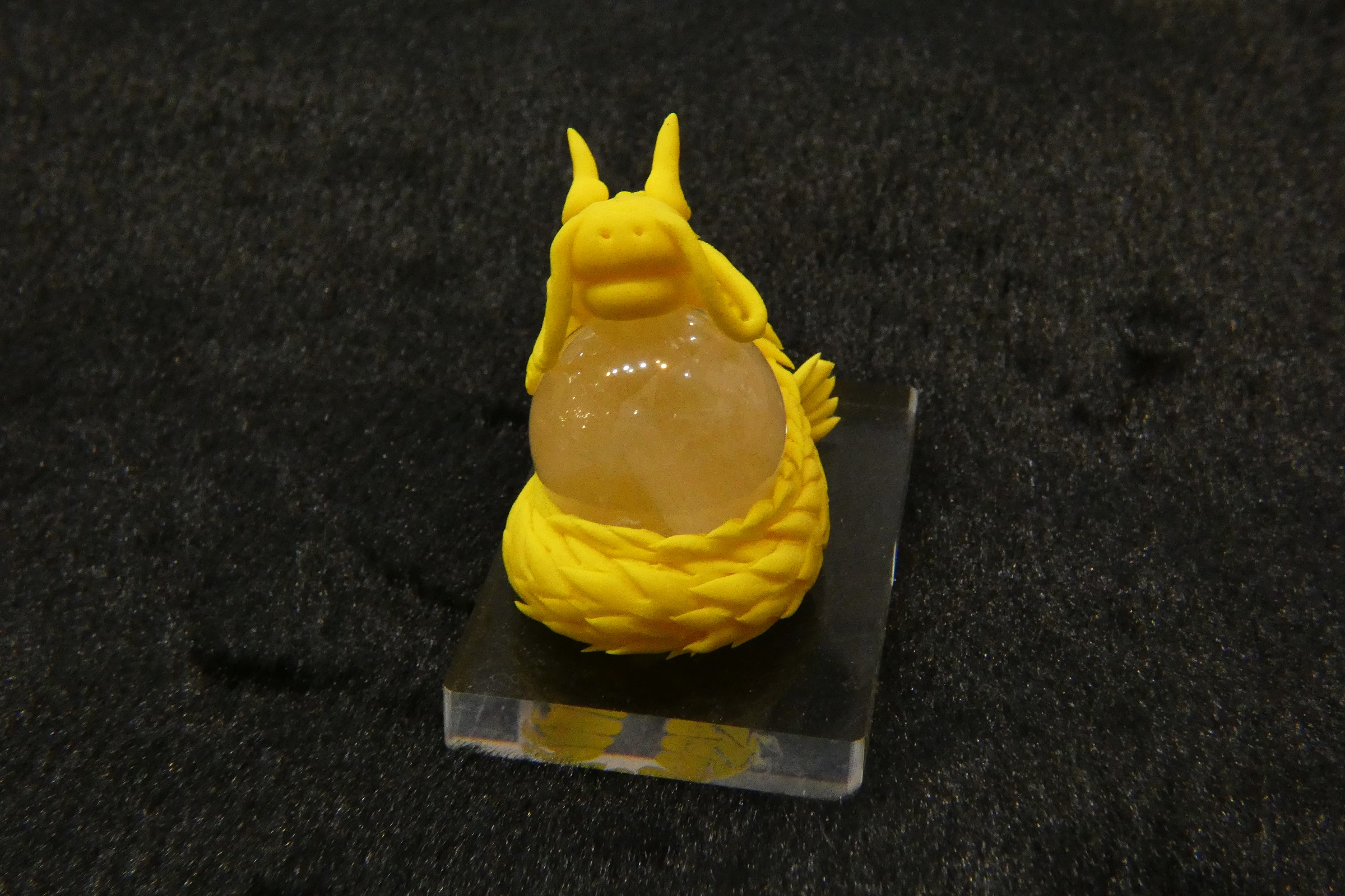 手のひらサイズのパワースポット 30㎜珠天然水晶を抱えた まめ龍(黄龍)sa1941