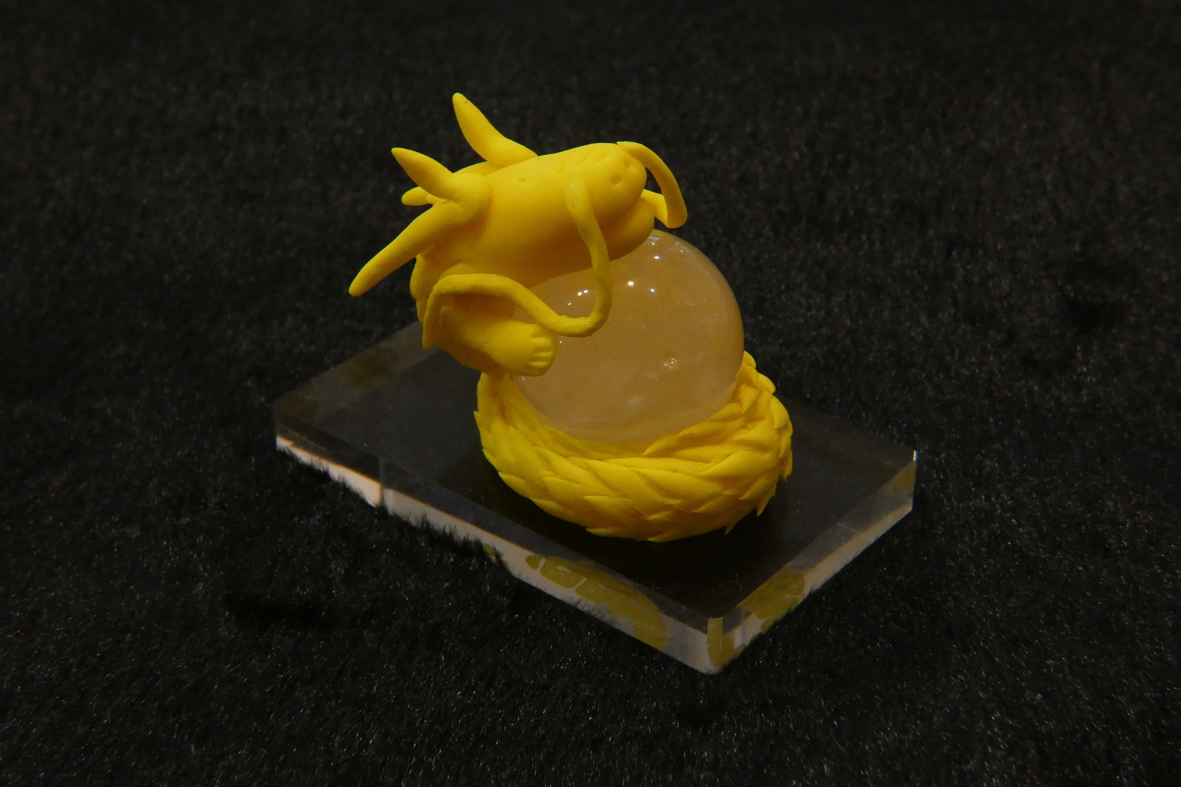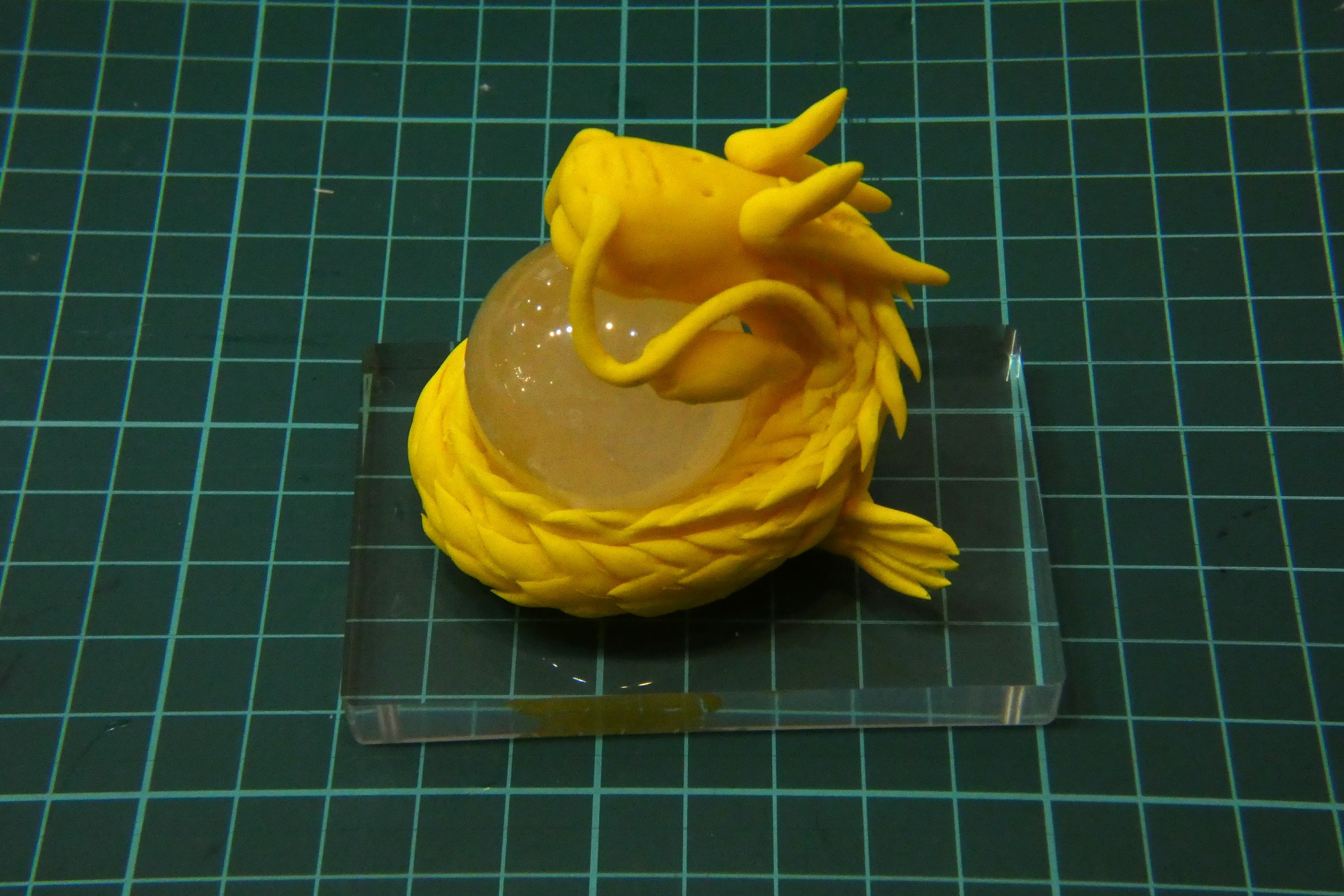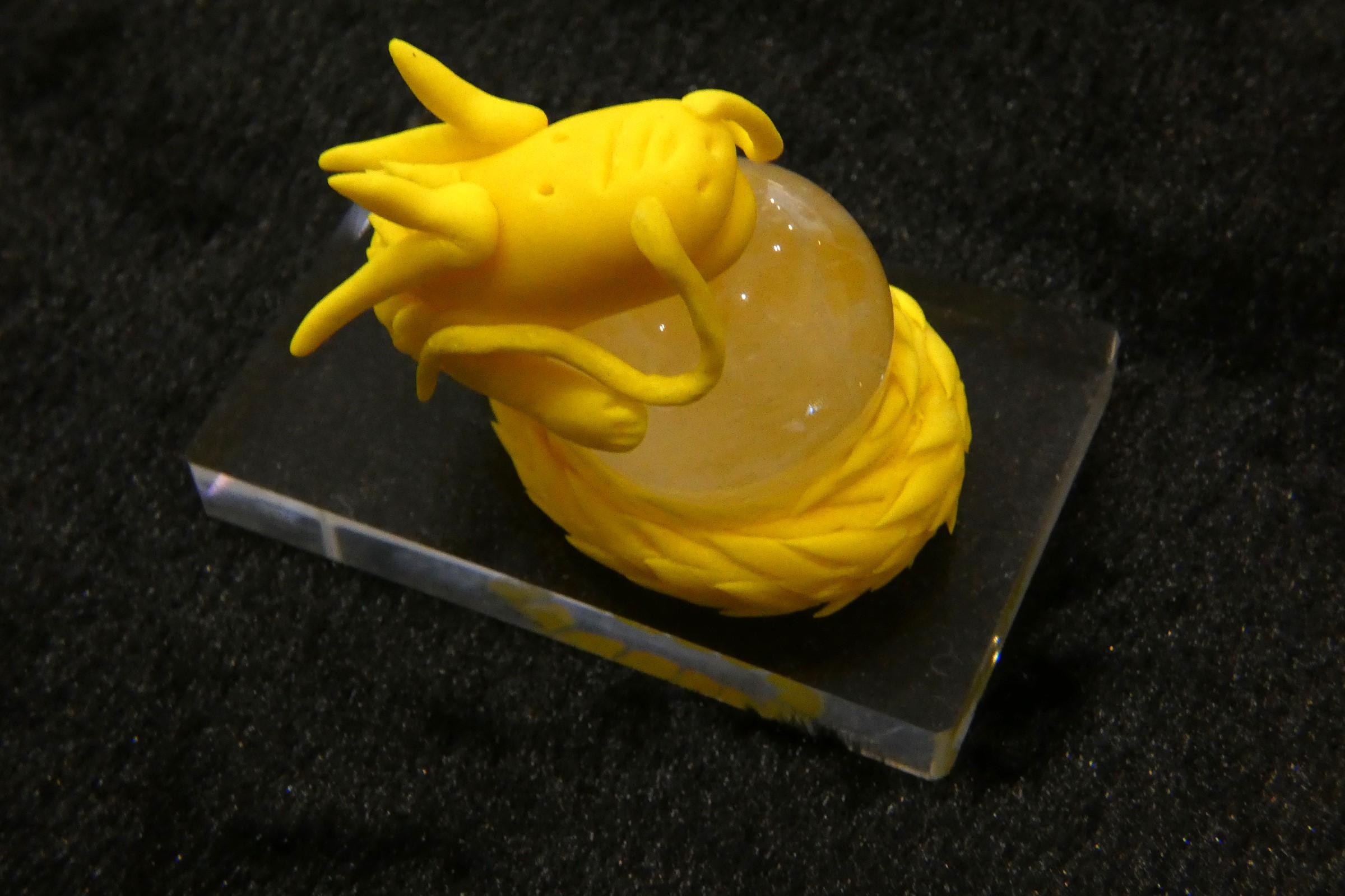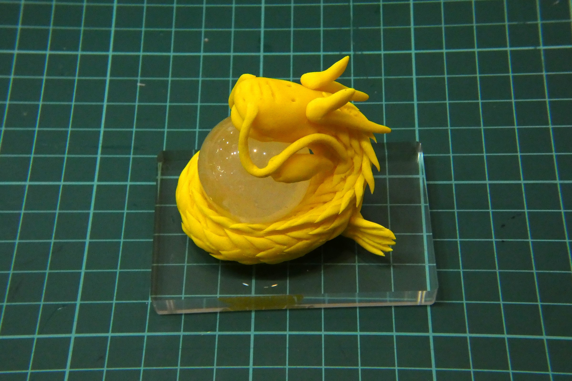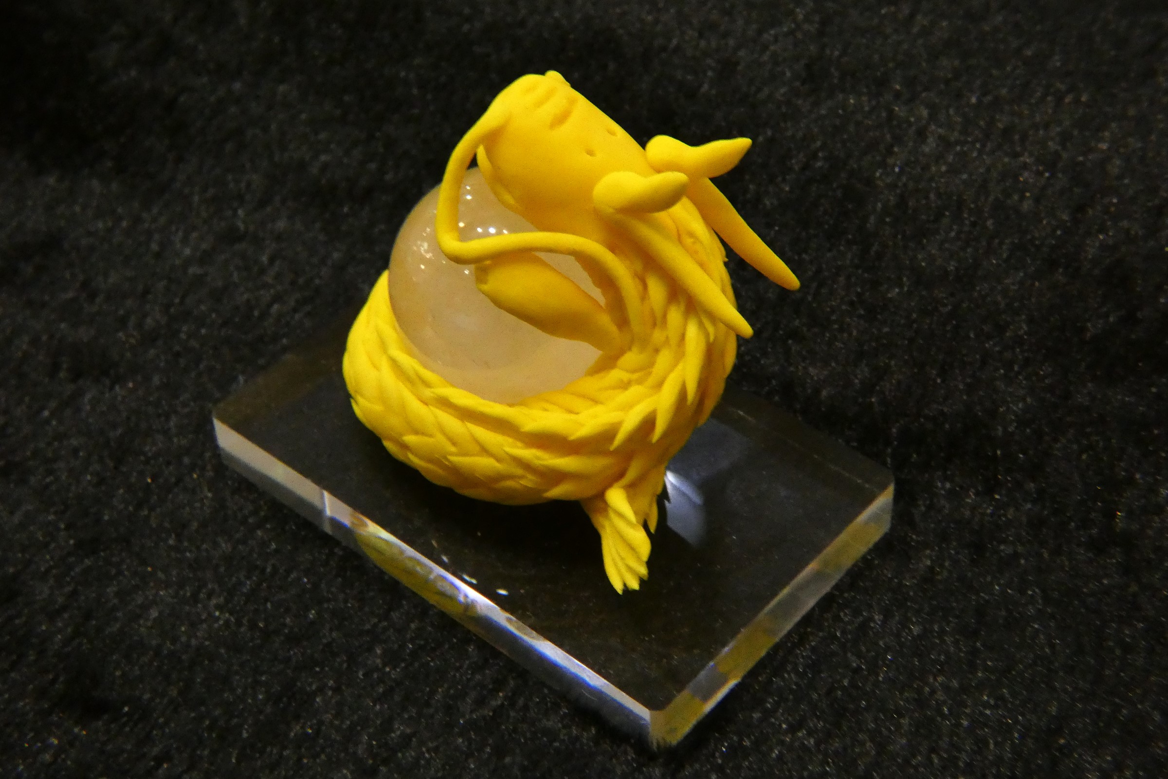 手のひらサイズのパワースポット 30㎜珠天然水晶を抱えた まめ龍(黄龍)sa1941
