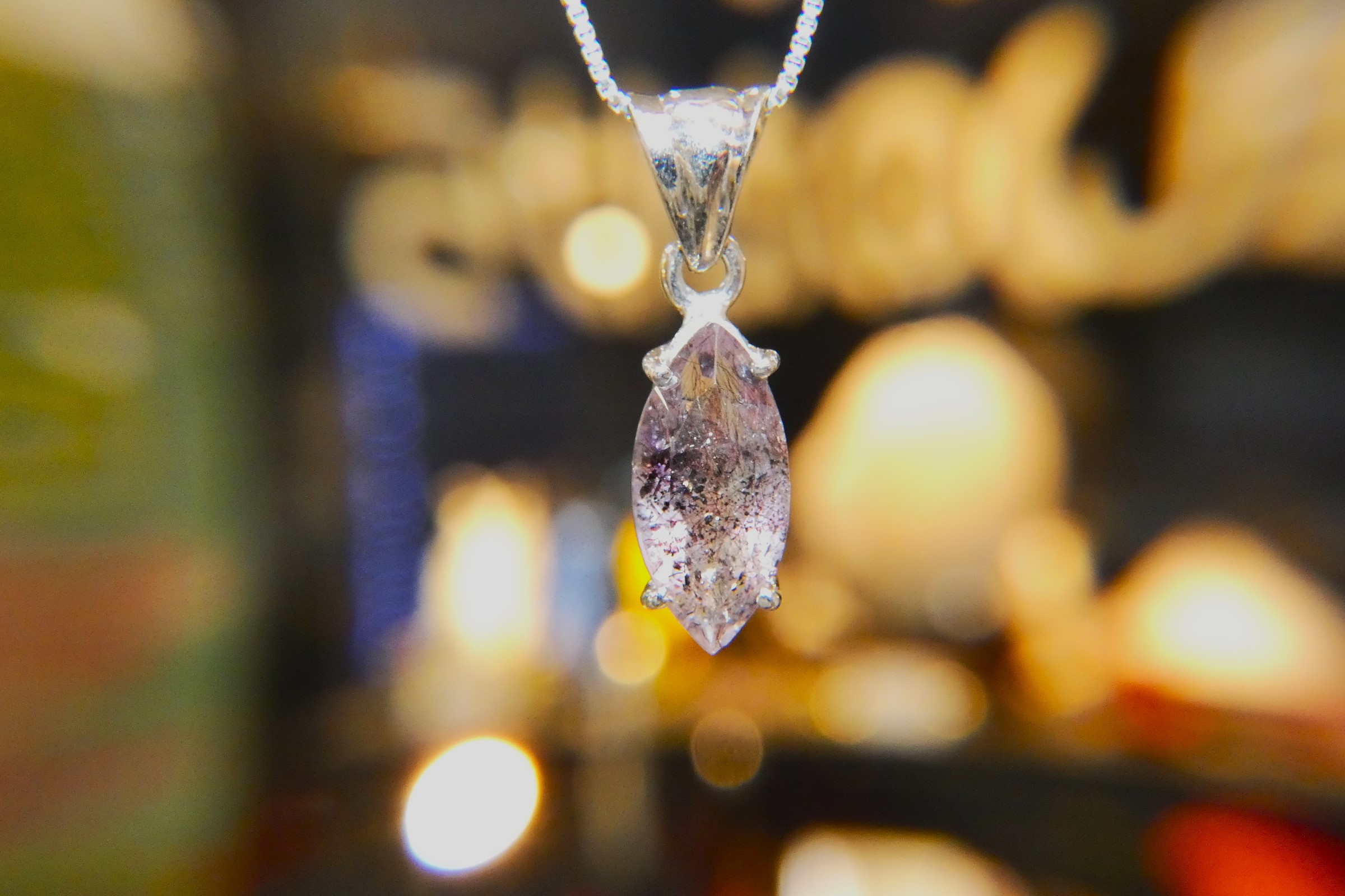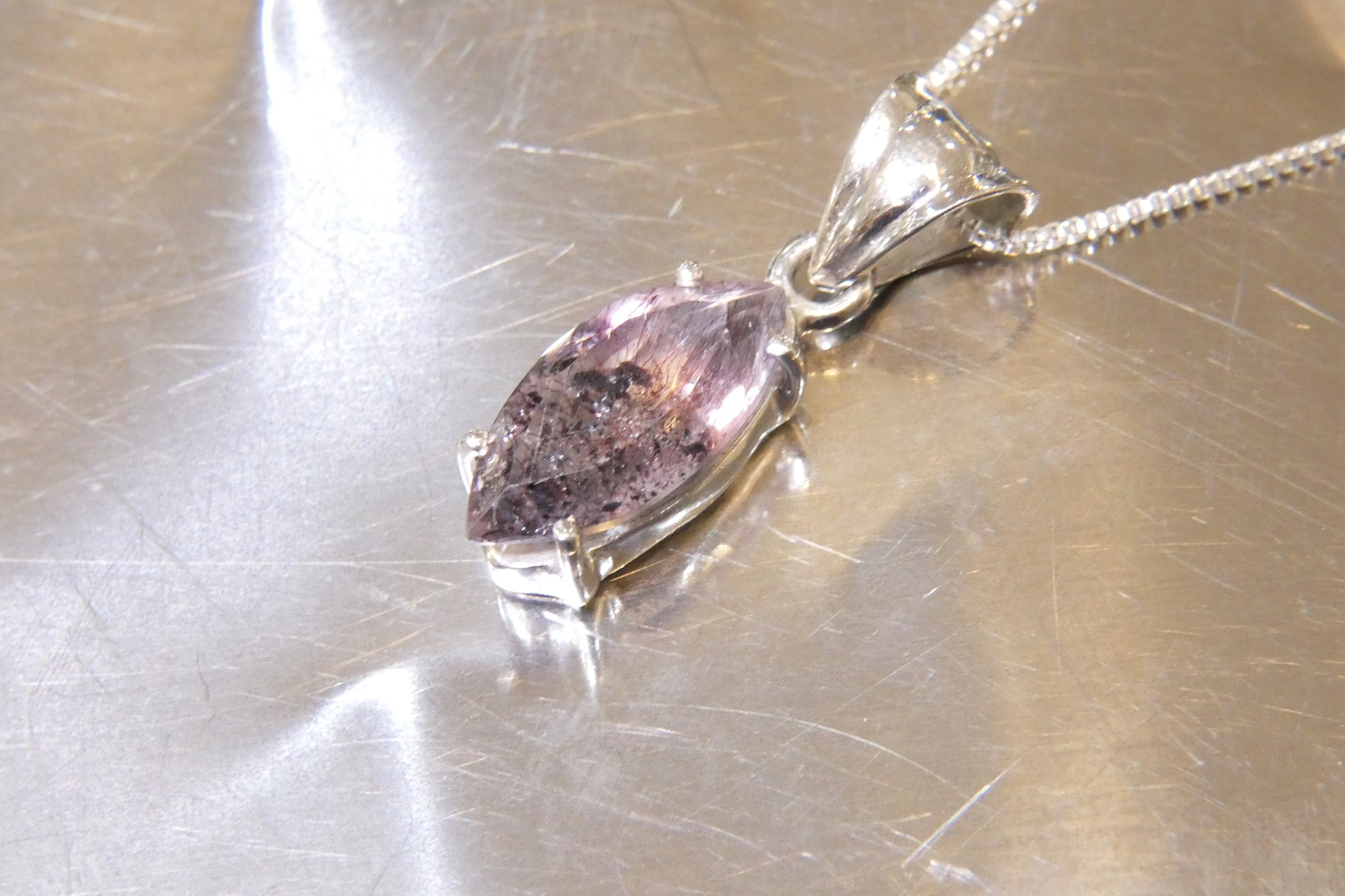 質の良いスーパーセブンをマーキスカットにした ペンダント