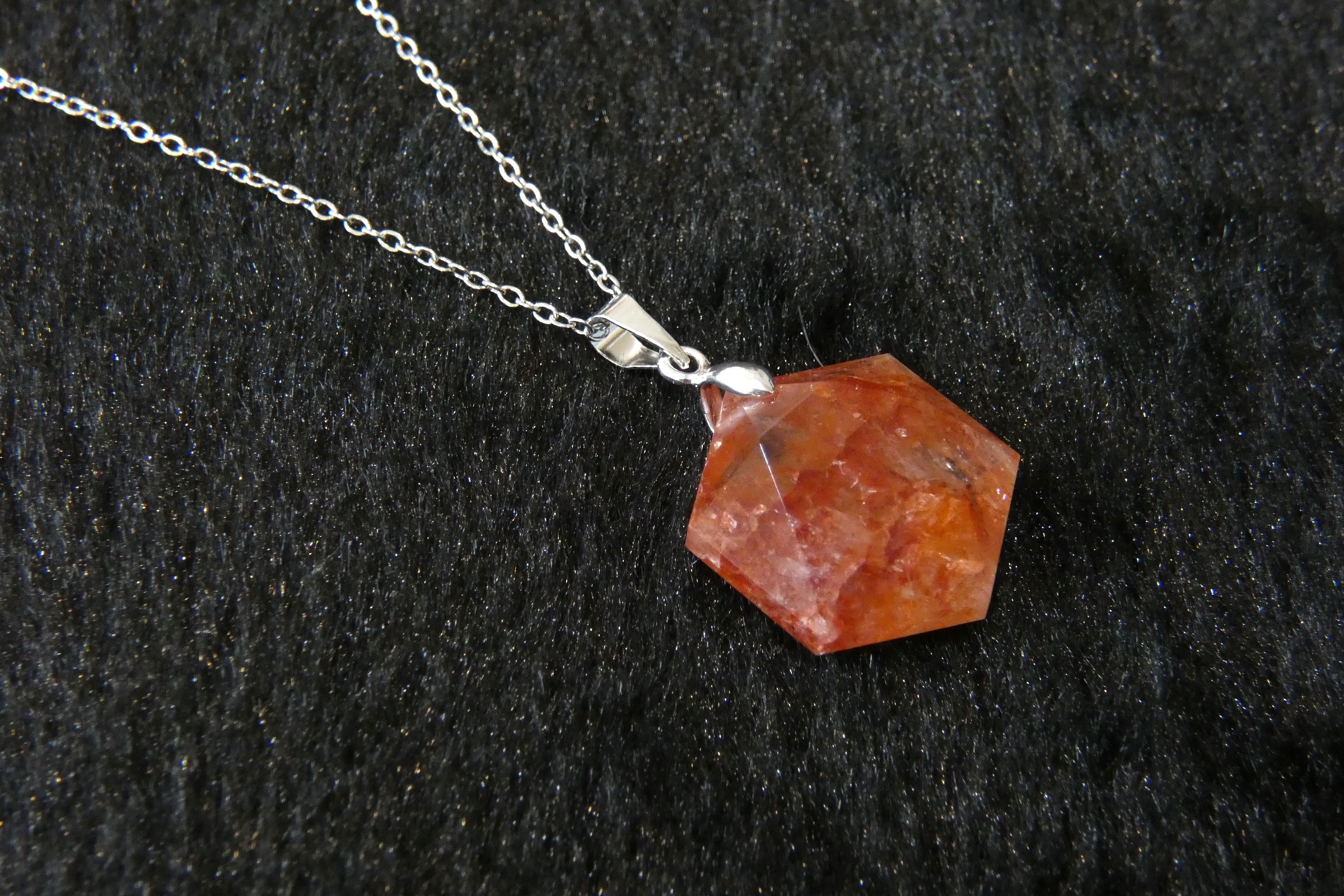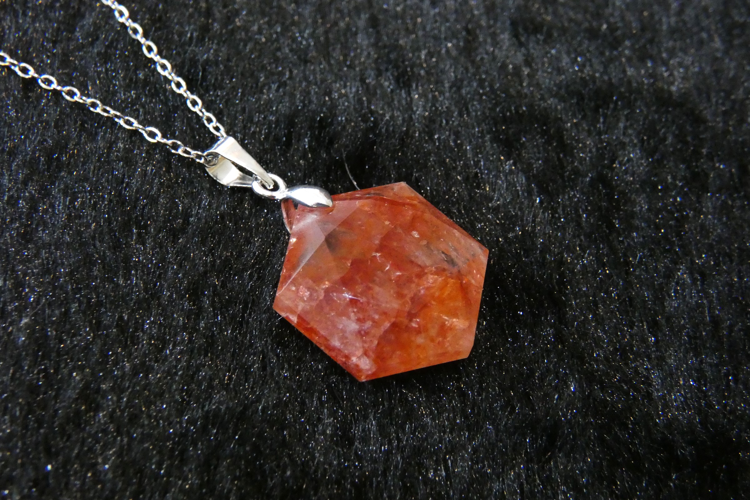 活性 目標達成のお守り レッドヘマタイトクォーツ 六芒星ペンダント sa1965