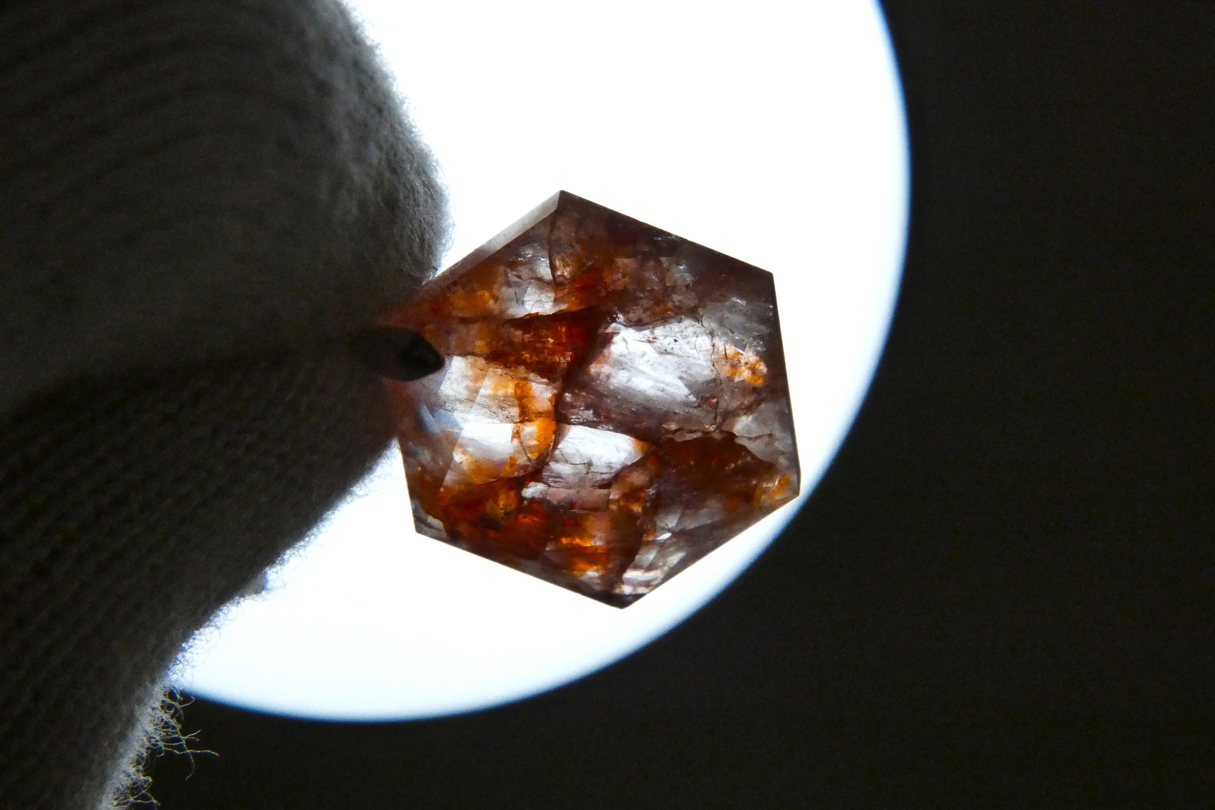 その名の通り水晶(クォーツ)の中にヘマタイト(赤鉄鉱)が内包された鉱物です。