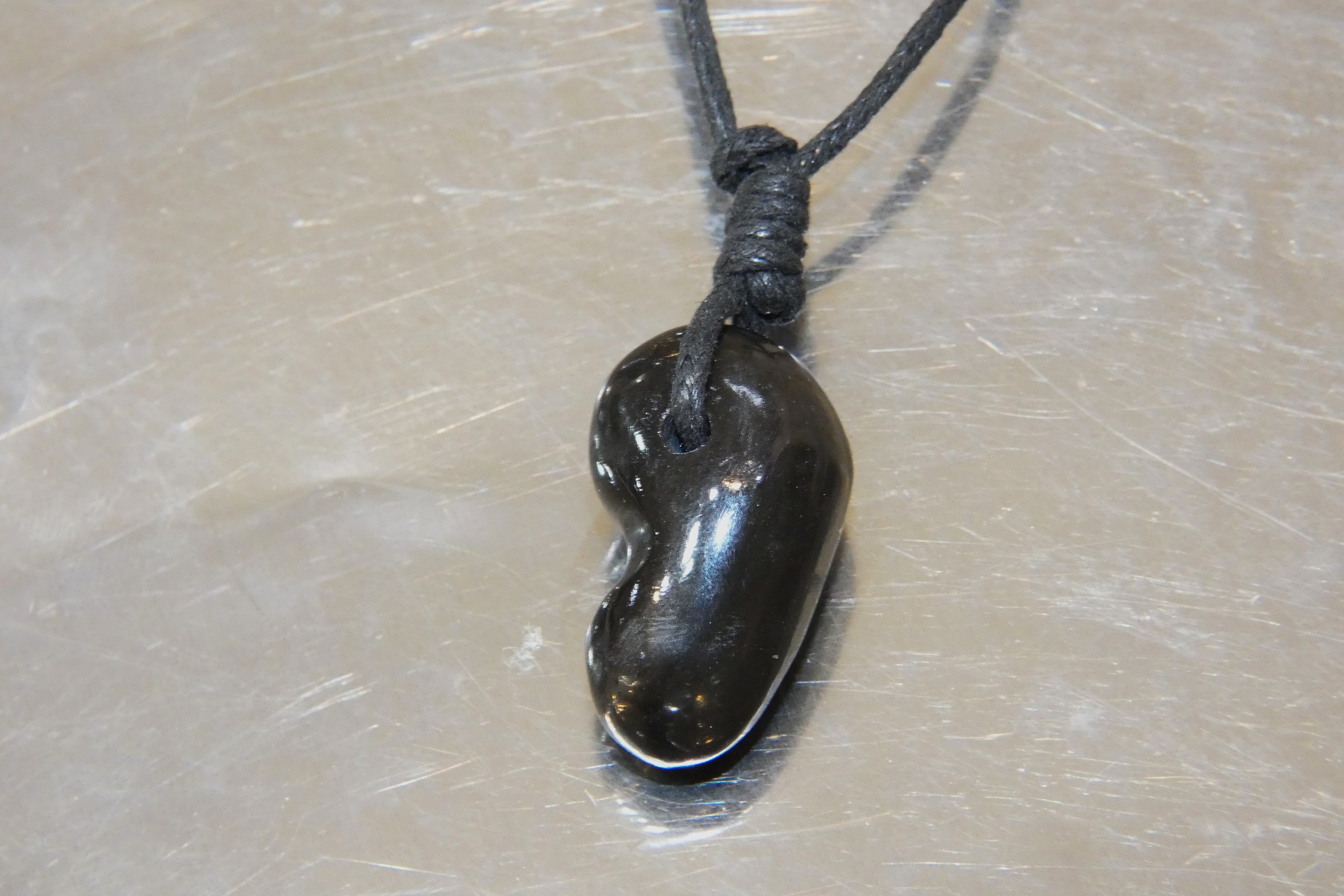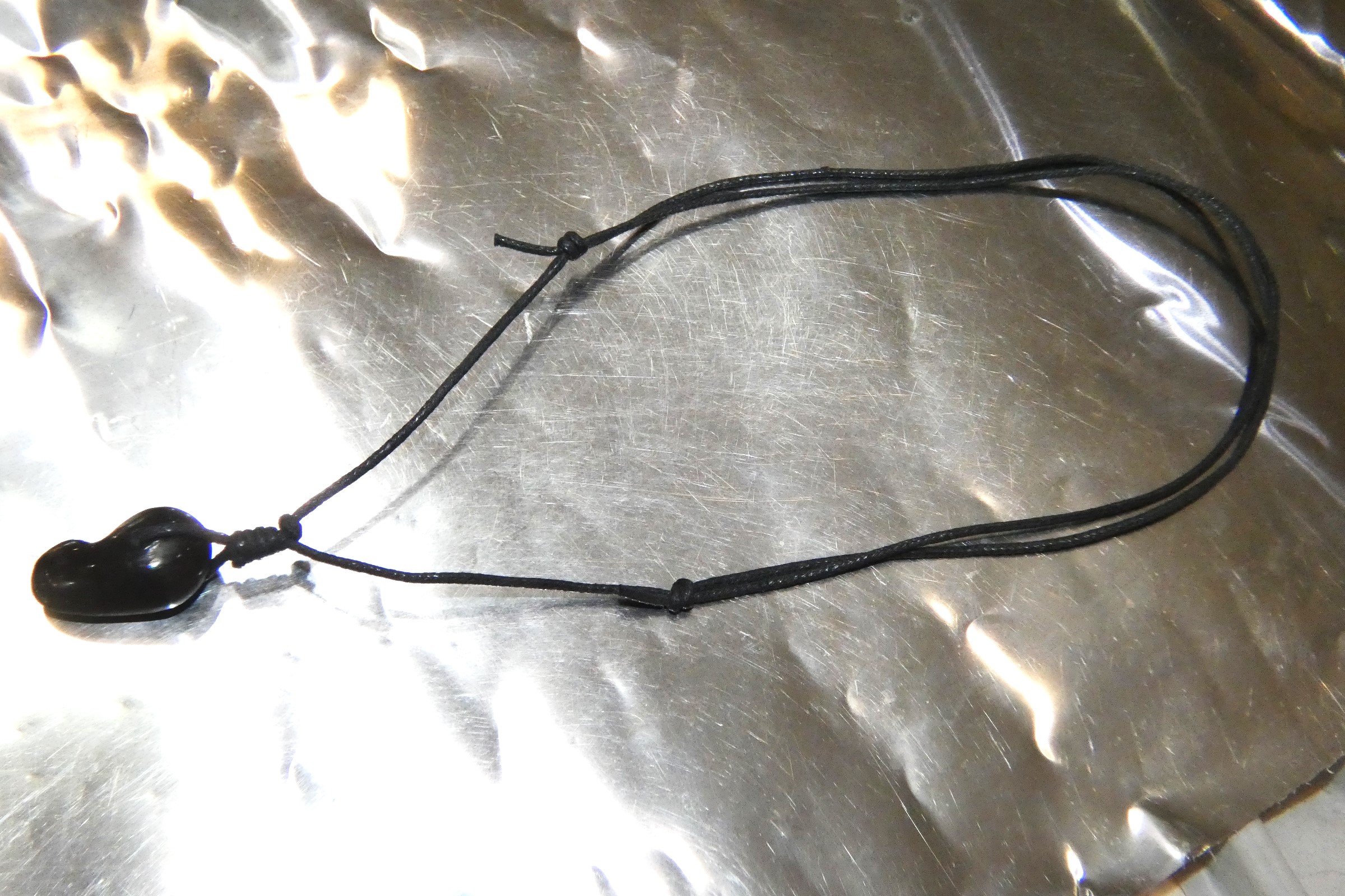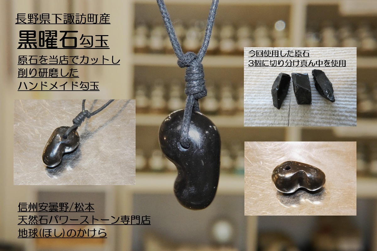 長野県下諏訪町産 黒曜石を使った手作り勾玉ペンダント sa1971