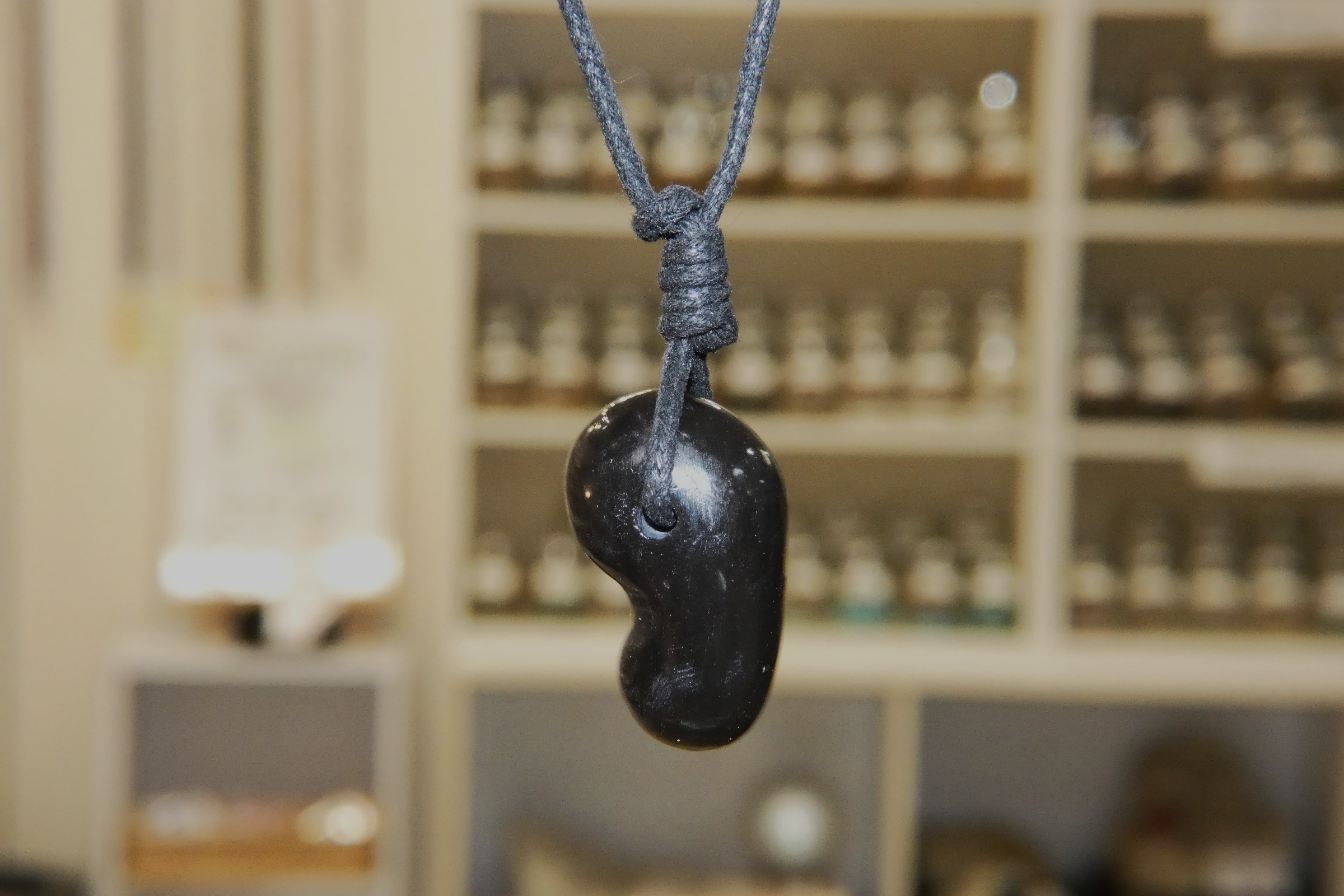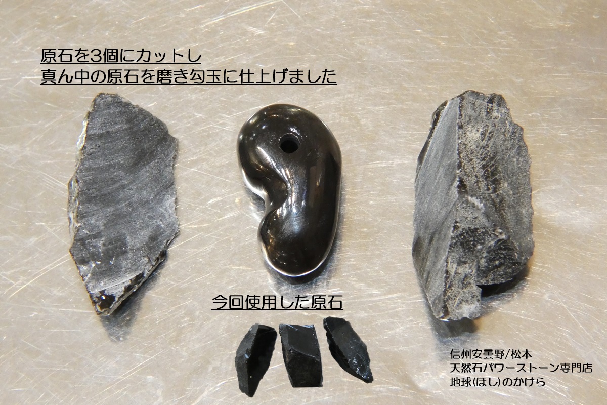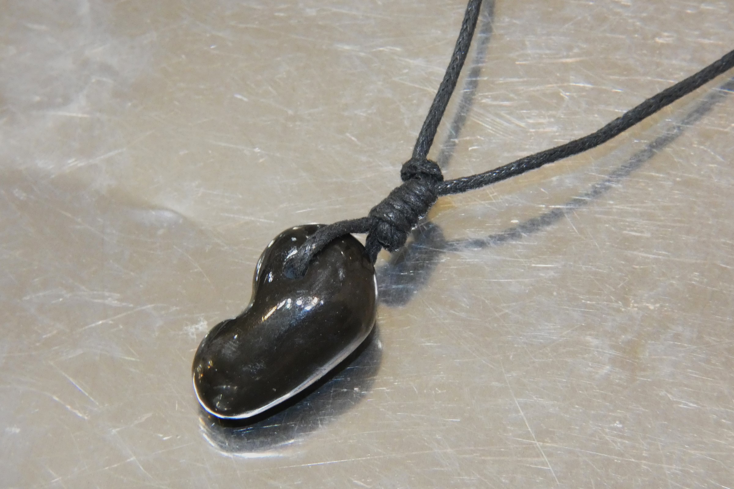 長野県下諏訪町産 黒曜石を使った手作り勾玉ペンダント sa1971