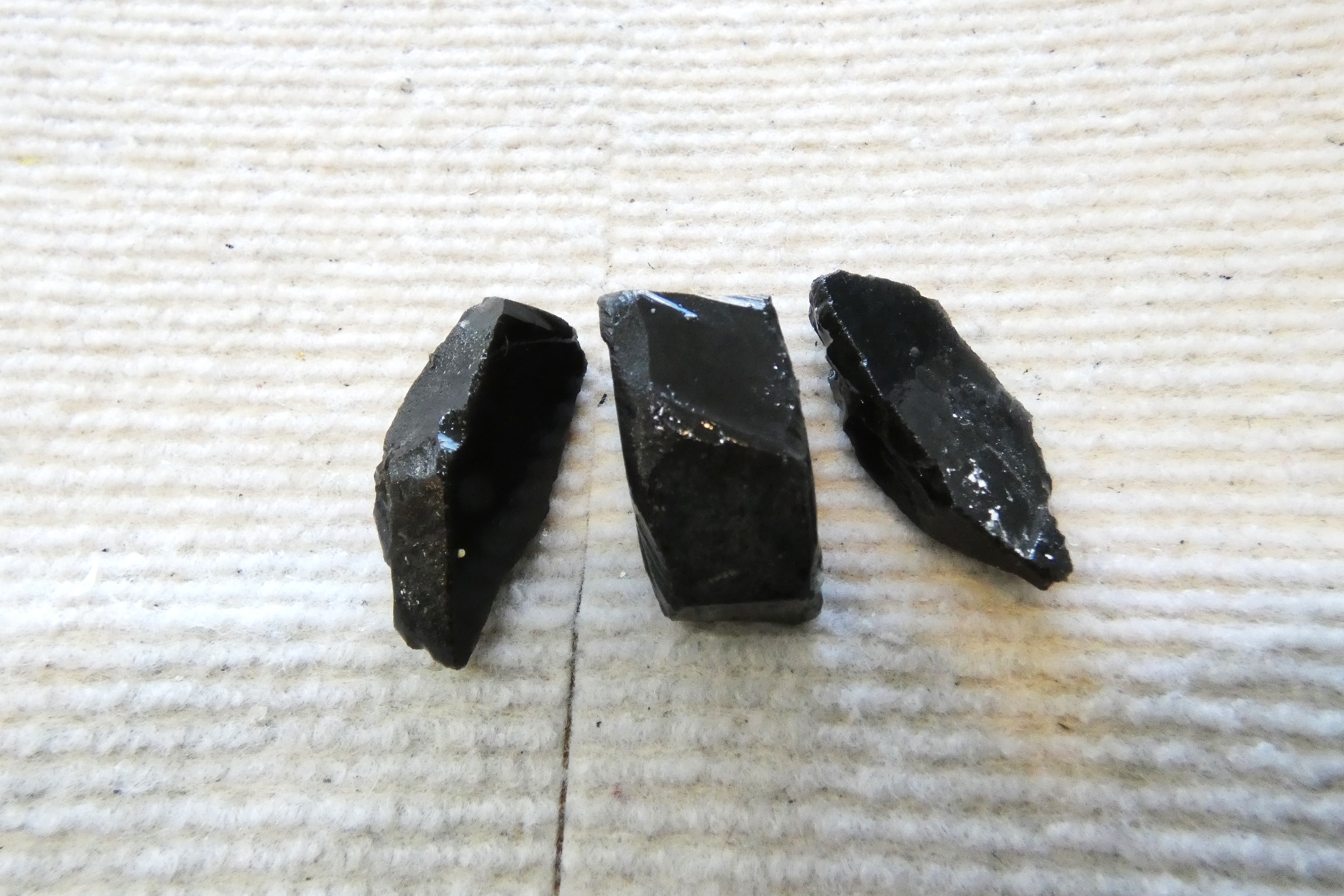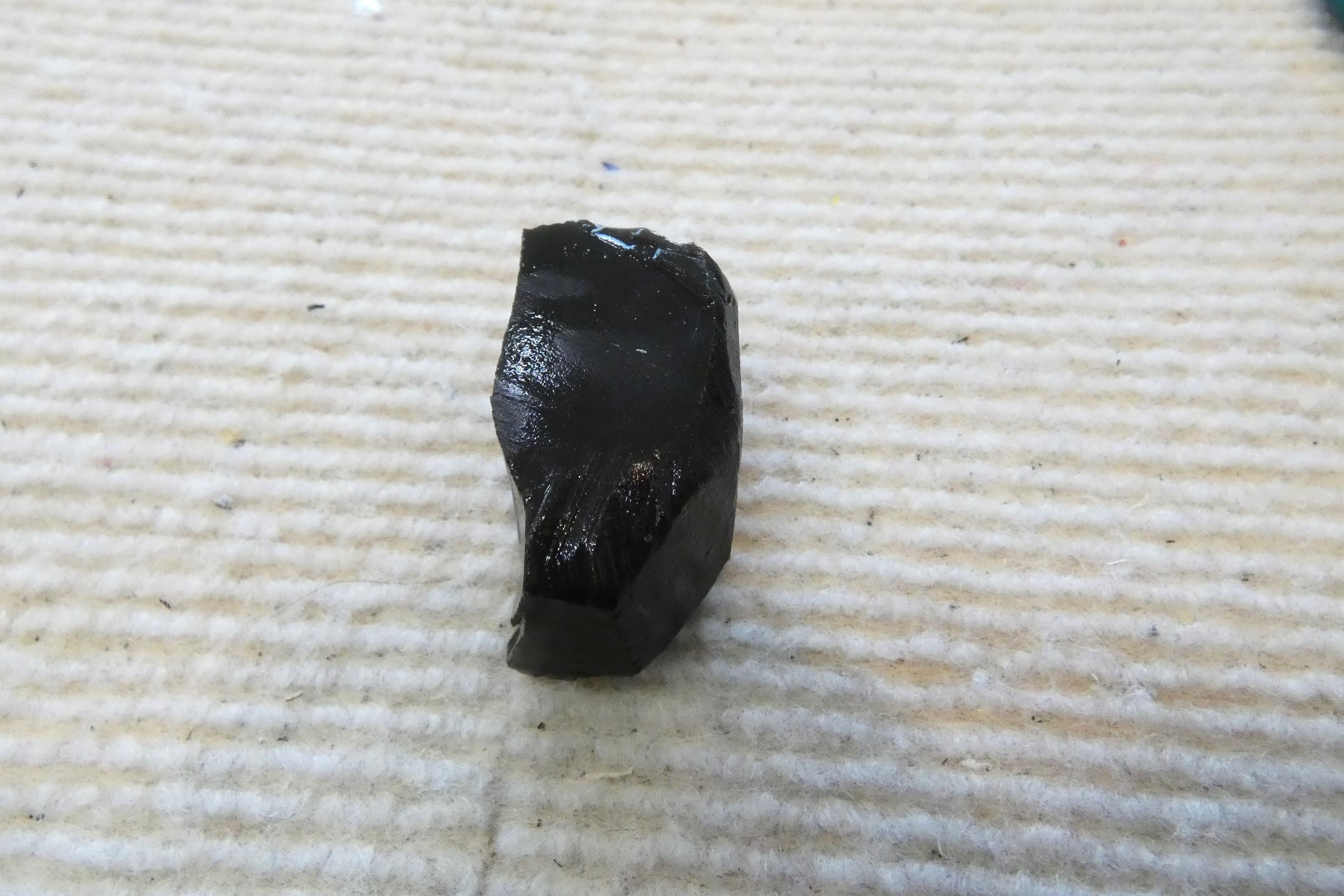 長野県諏訪郡下諏訪町で採取した黒曜石から切り出した