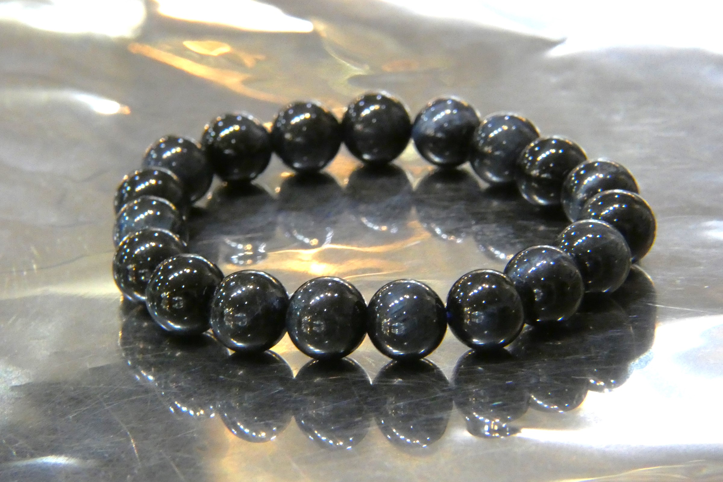 希少な天然色ブルータイガーアイ10mm珠ブレスレット