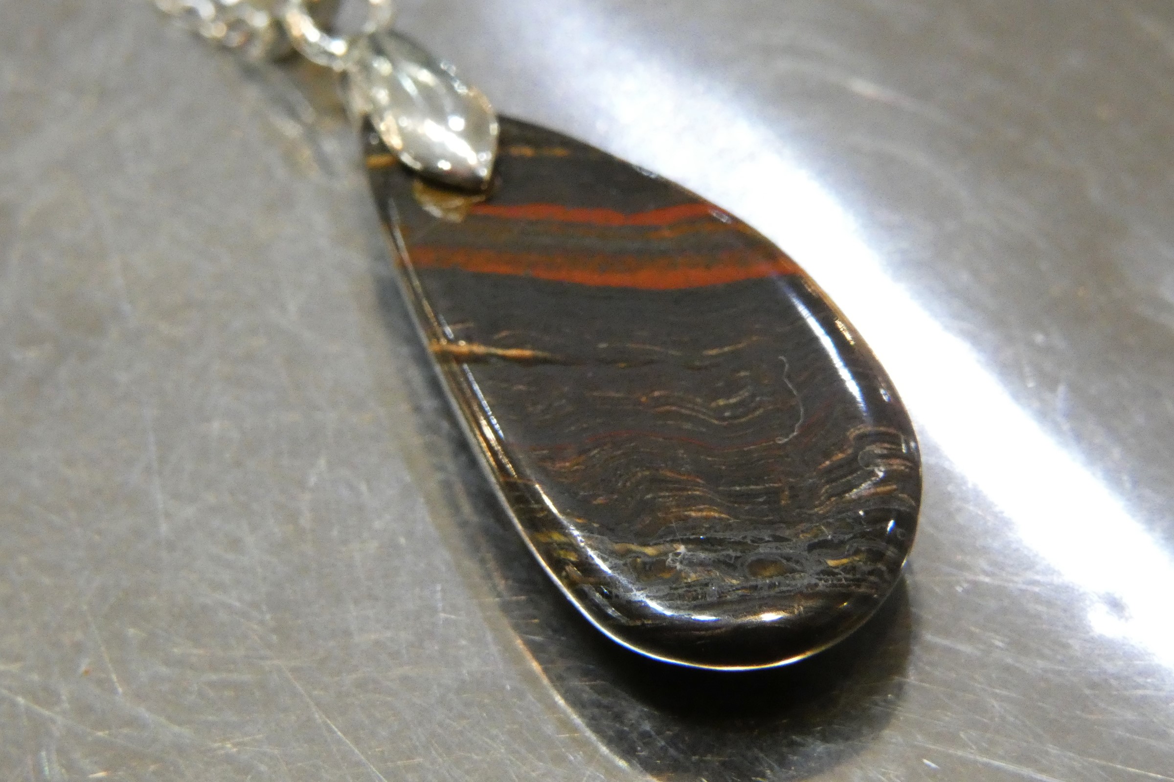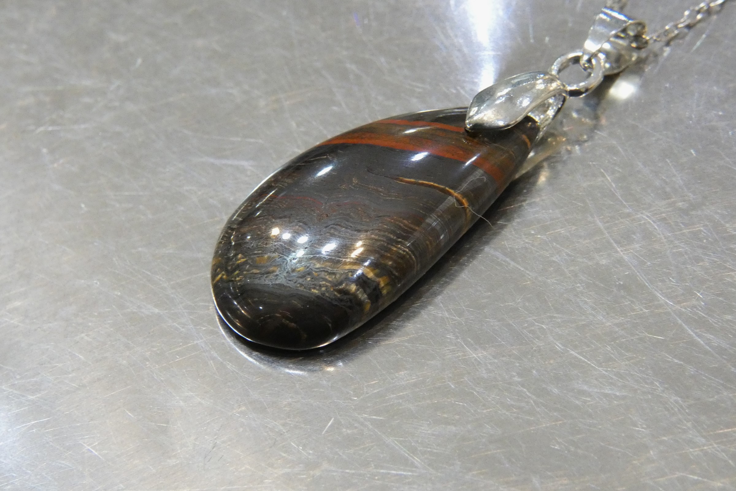 ヘマタイトとタイガーアイが共鳴する アイアンタイガーアイペンダント sa1999