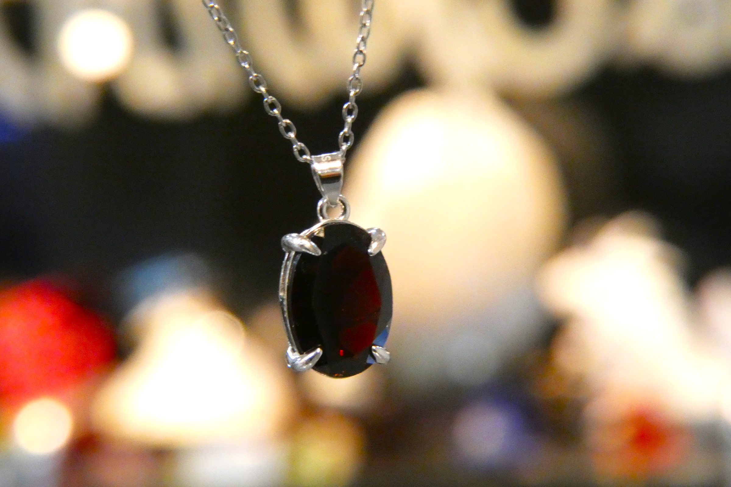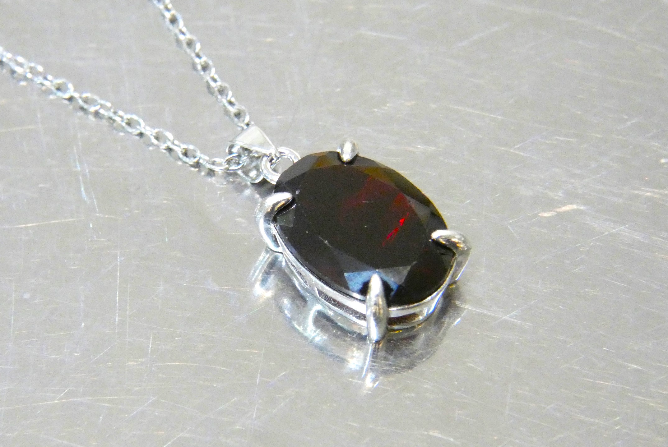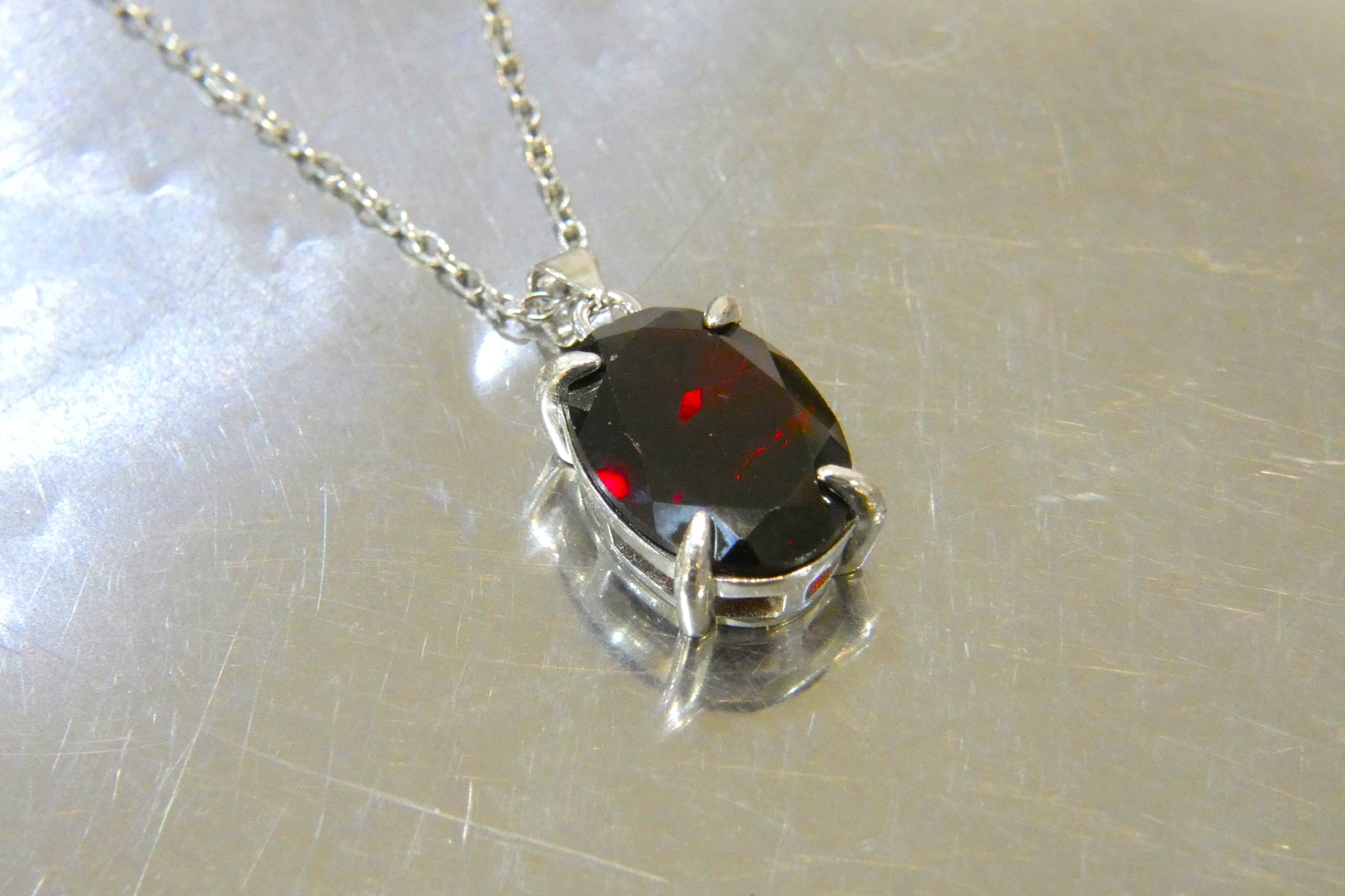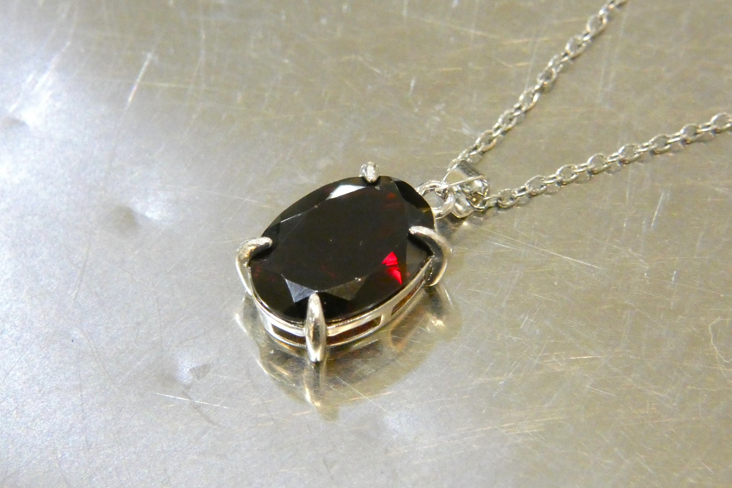 上質なオーバルファセットのルースを当店でペンダントに仕上げました