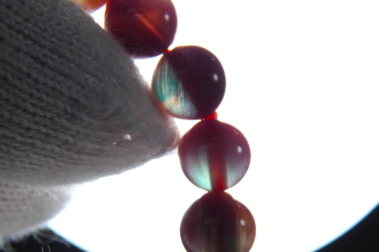 全体は赤褐色ですが角度により青緑色に見えるレッドアンデシンです