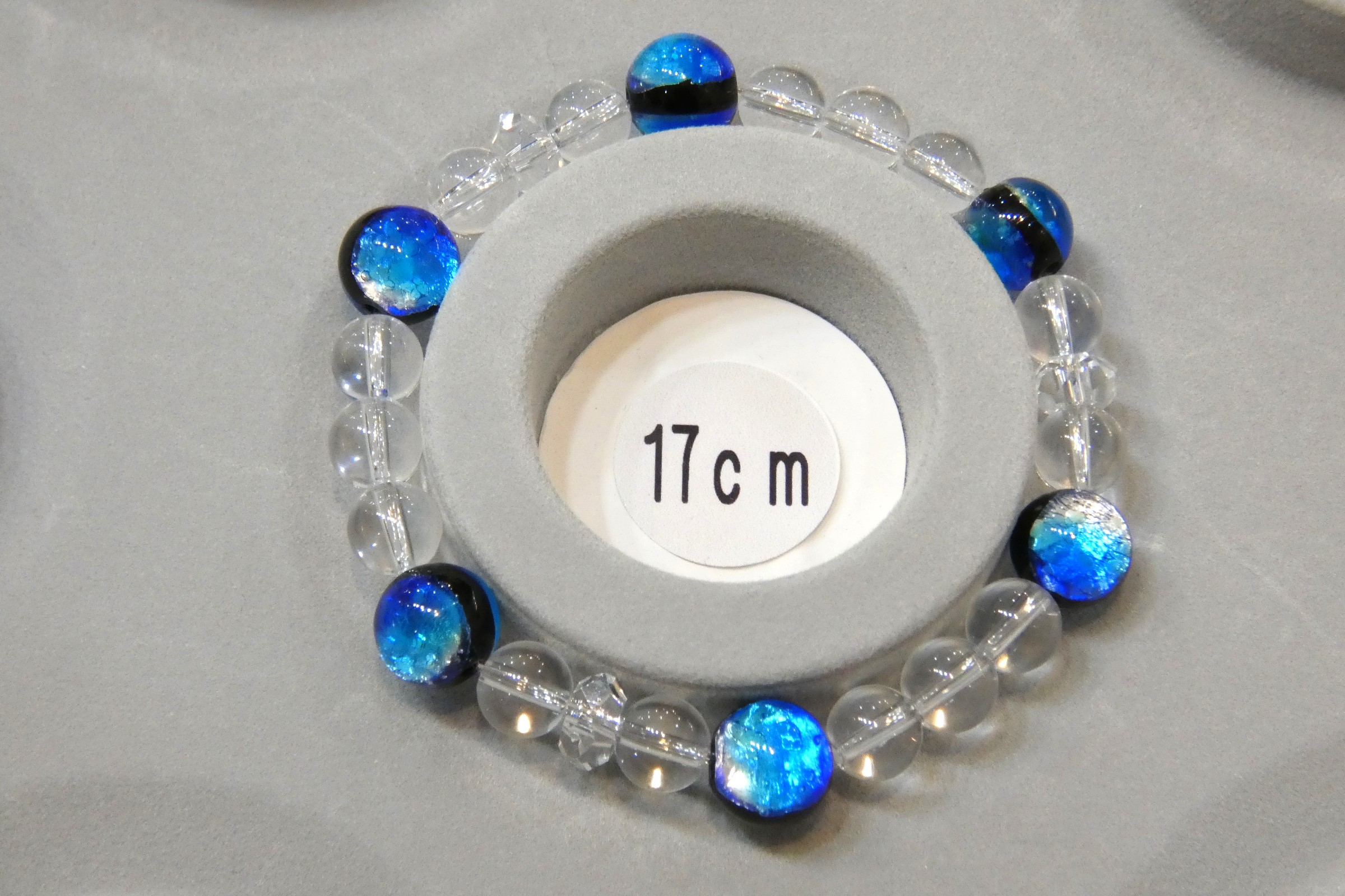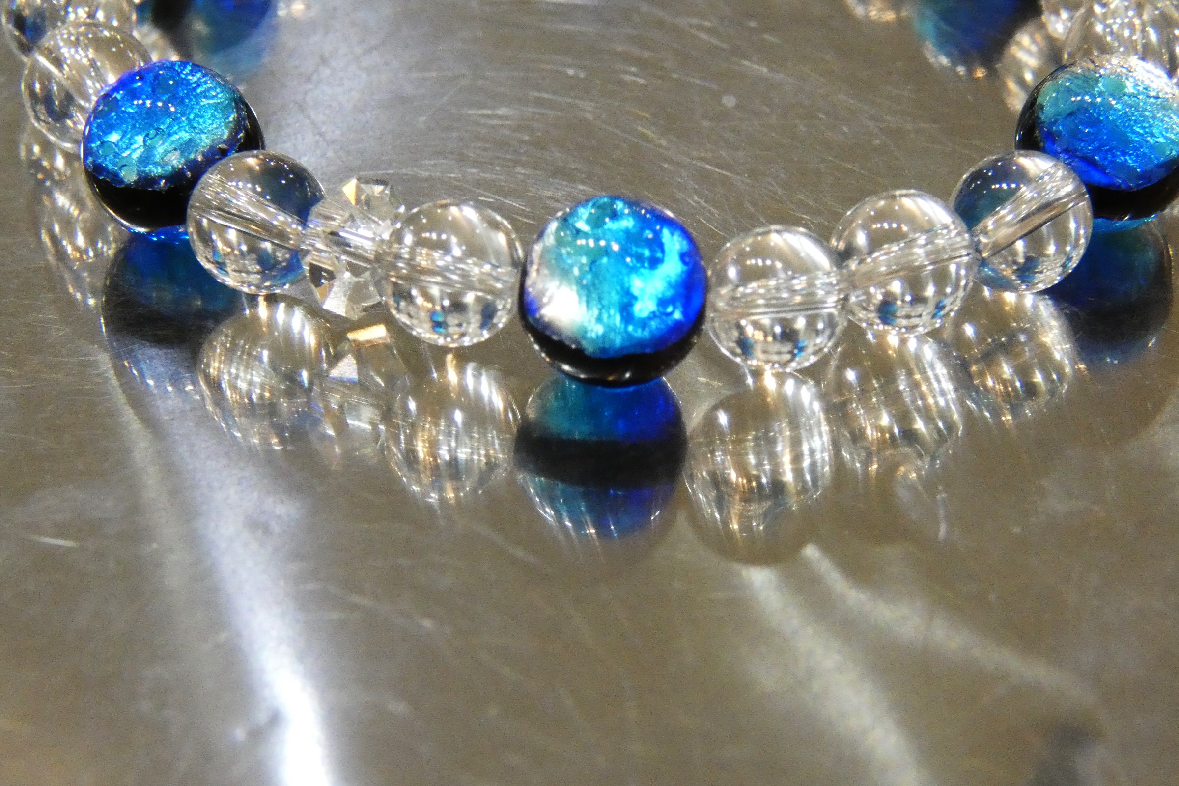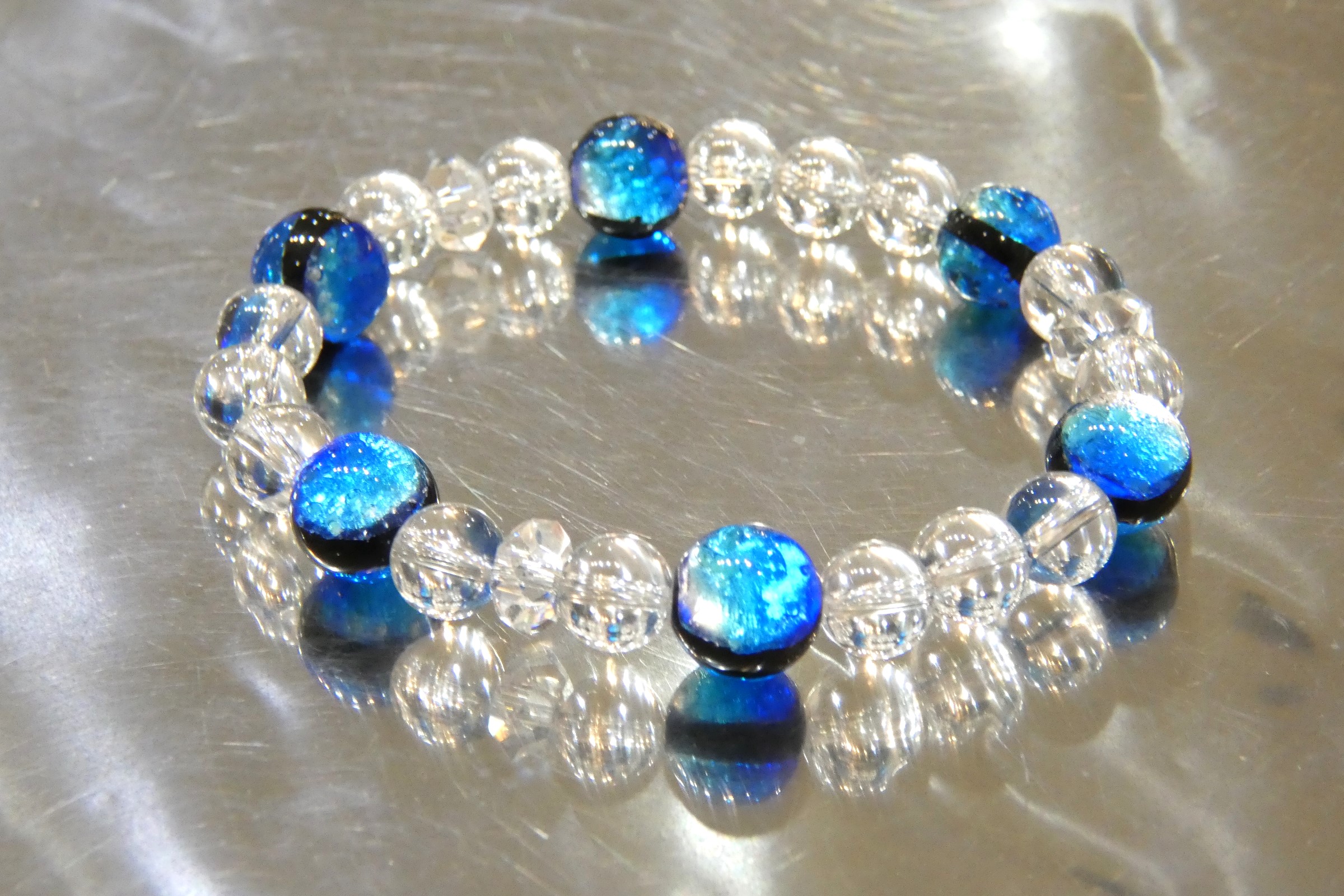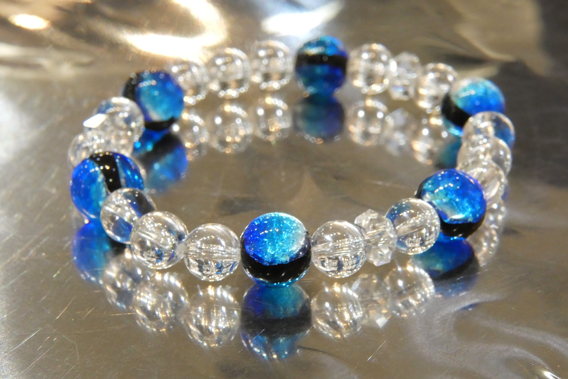 南国の海を感じる人気のホタルガラスと天然水晶8㎜珠ブレスレット sa2008