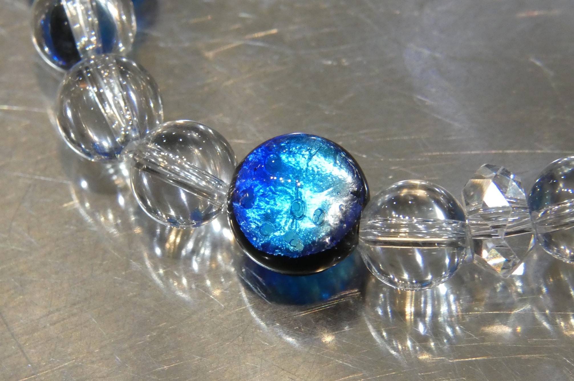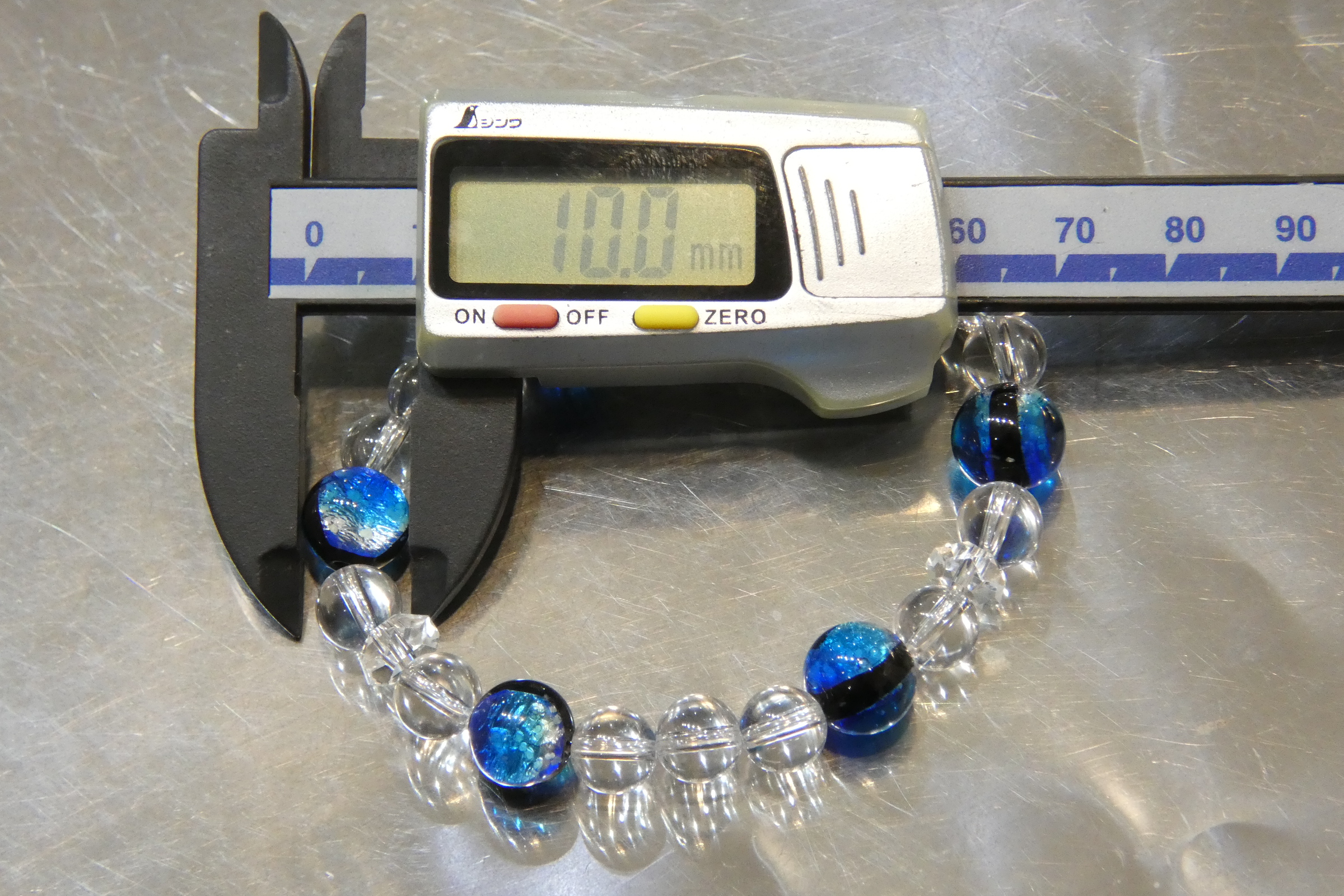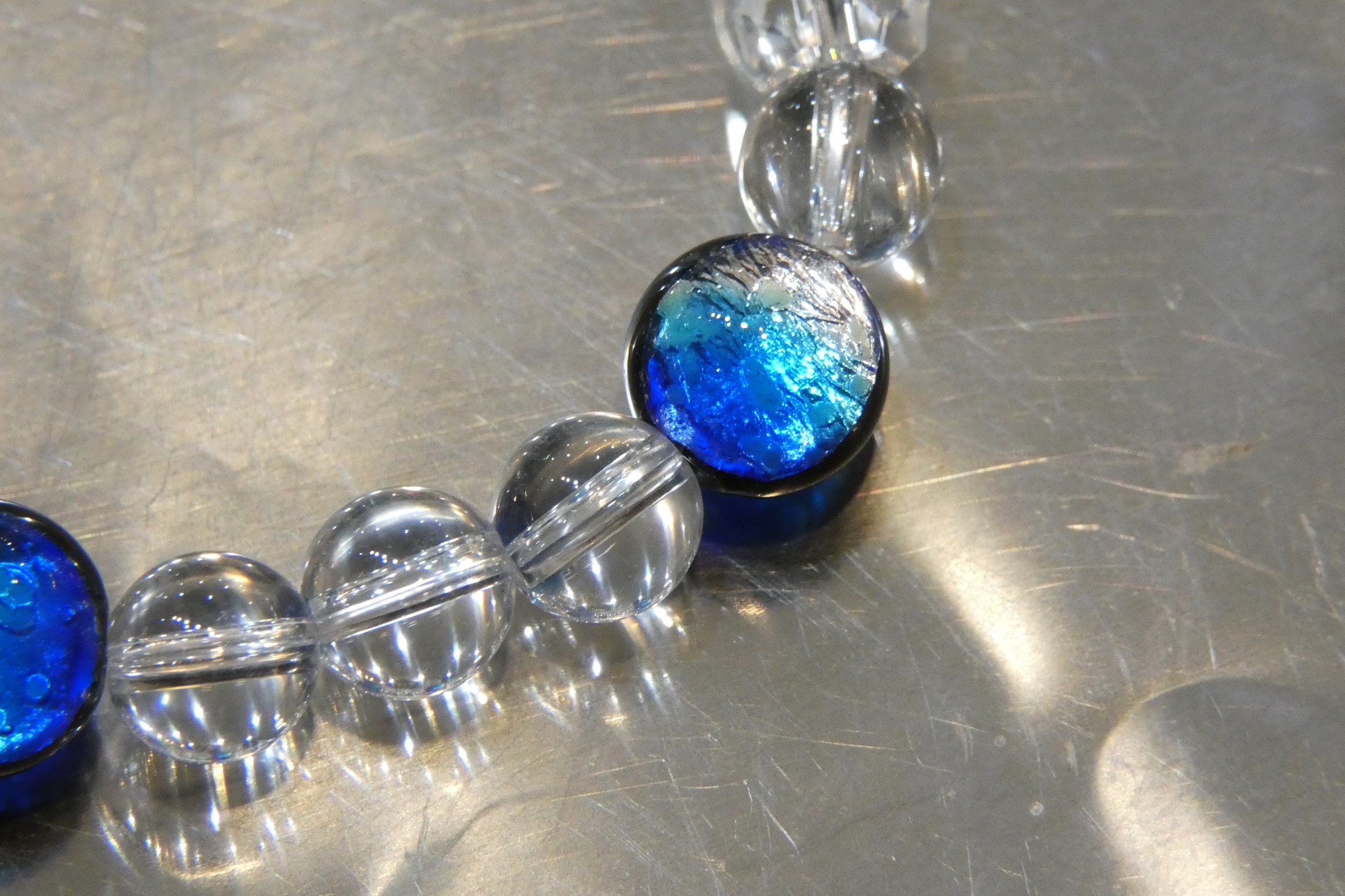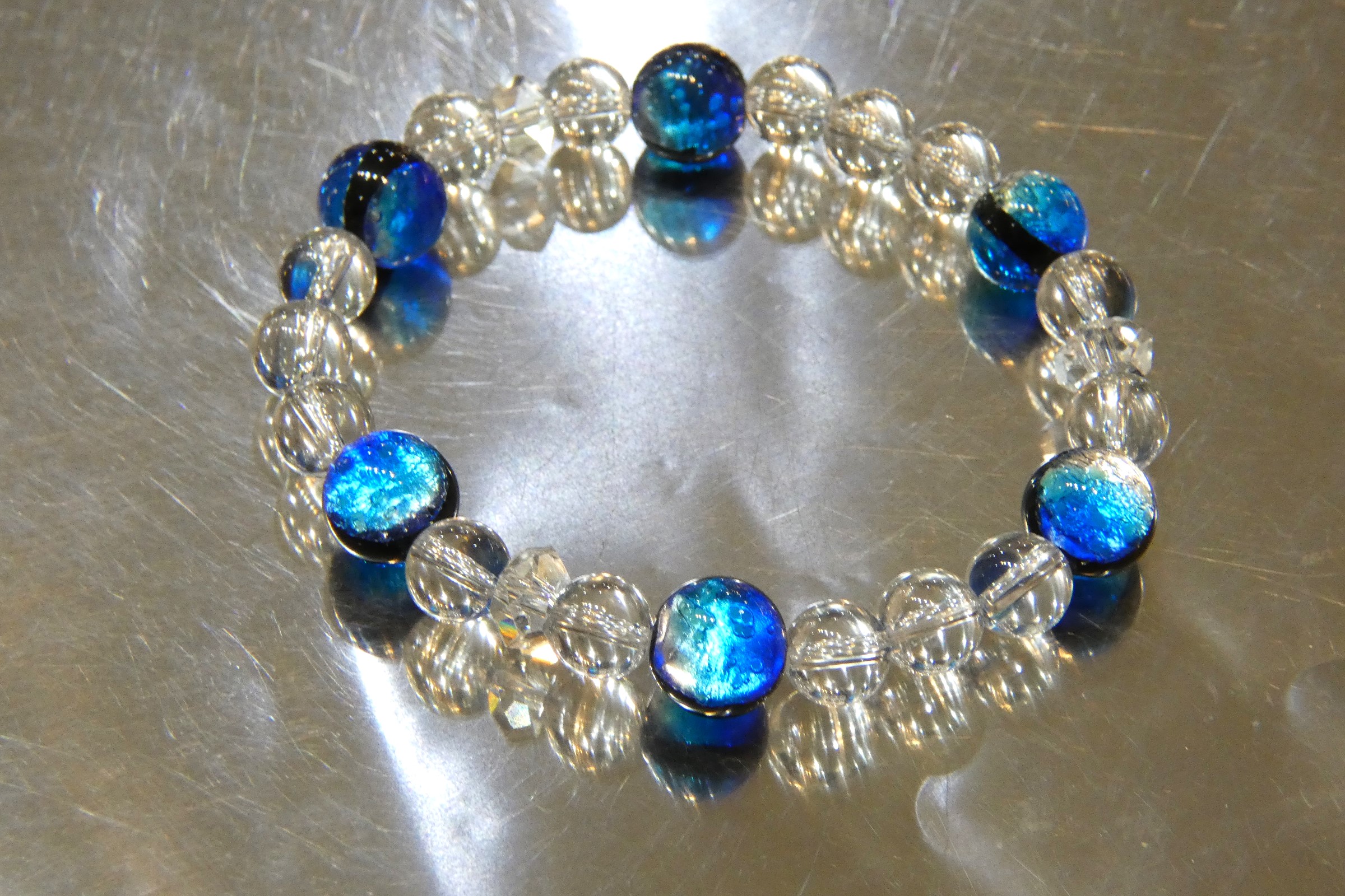 南国の海を感じる人気のホタルガラスと天然水晶8㎜珠ブレスレット sa2008
