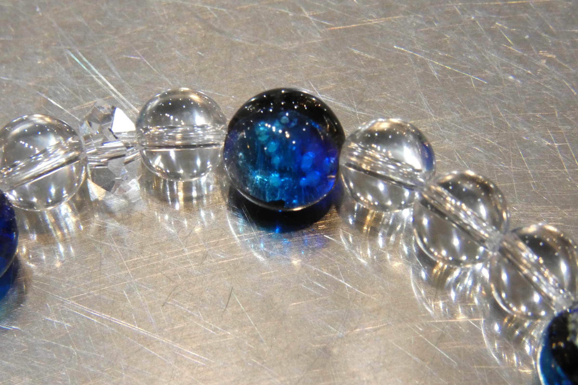 蒼とシルバーに輝く美しいホタルガラスは心を癒し