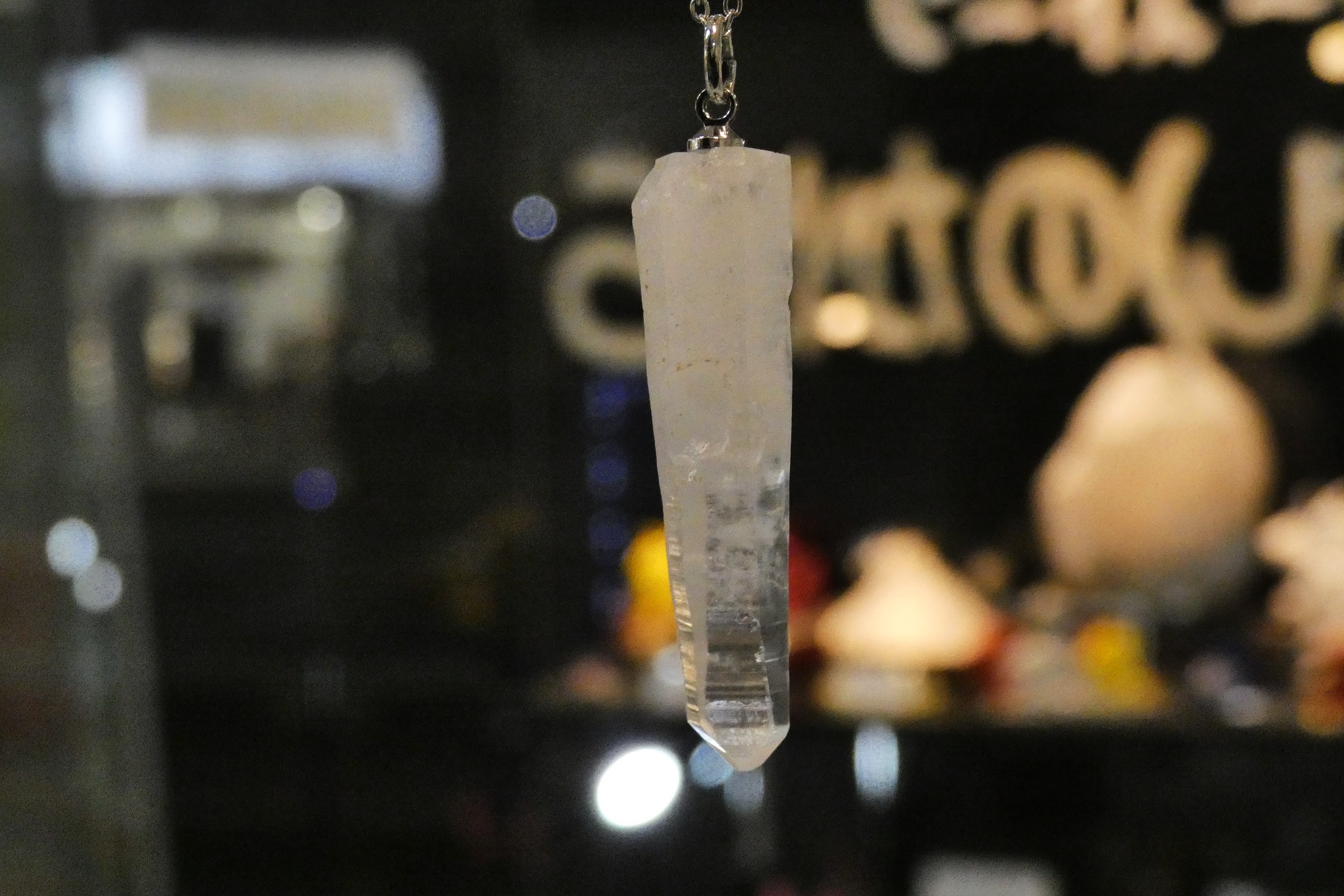 希少な天然水晶の原石を当店でそのままペンダントに仕立てました。