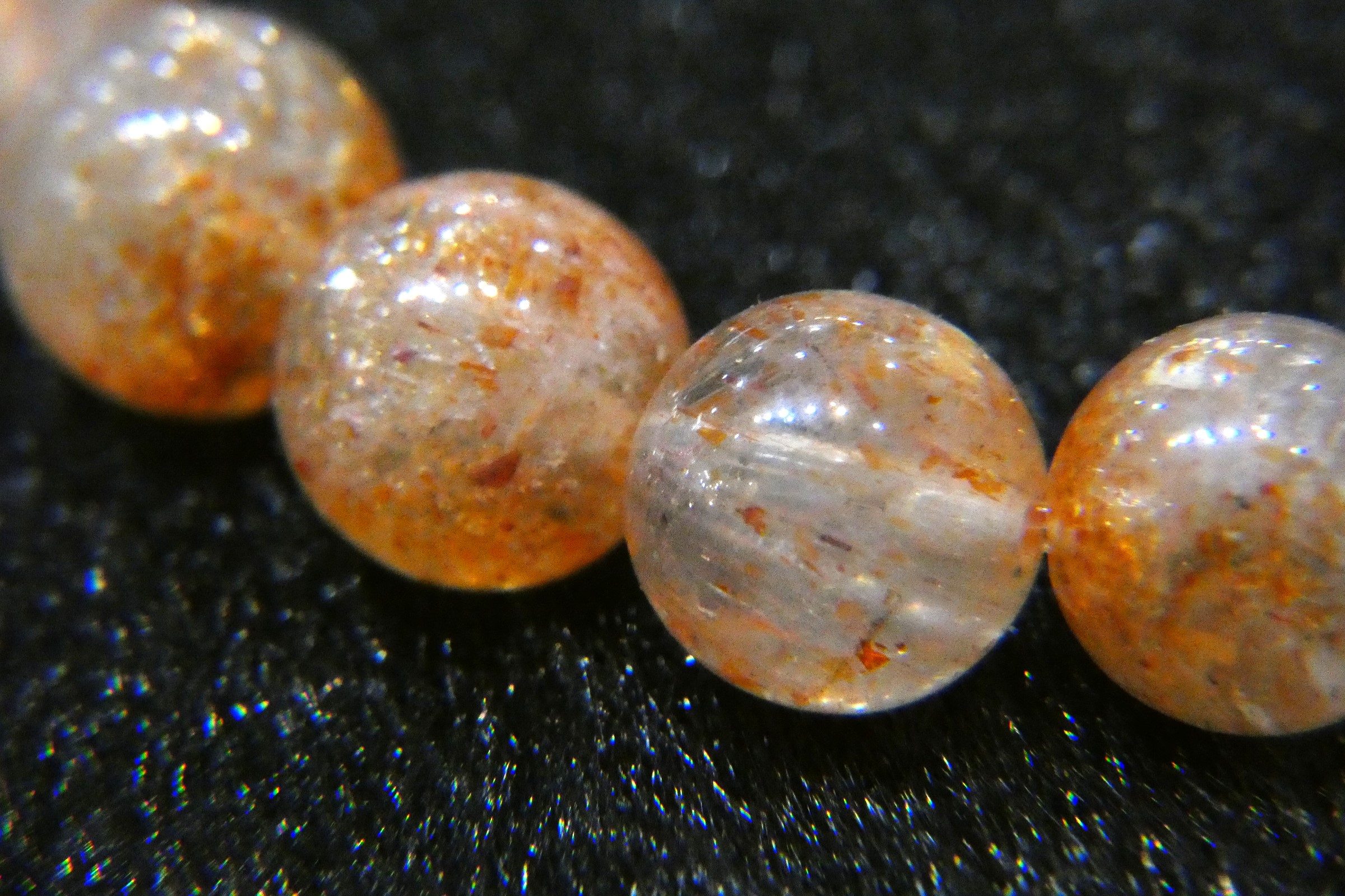 マイカサンストーンはマイカ(雲母)やレピドクロサイトなどが混入した長石(フェルドスパー)