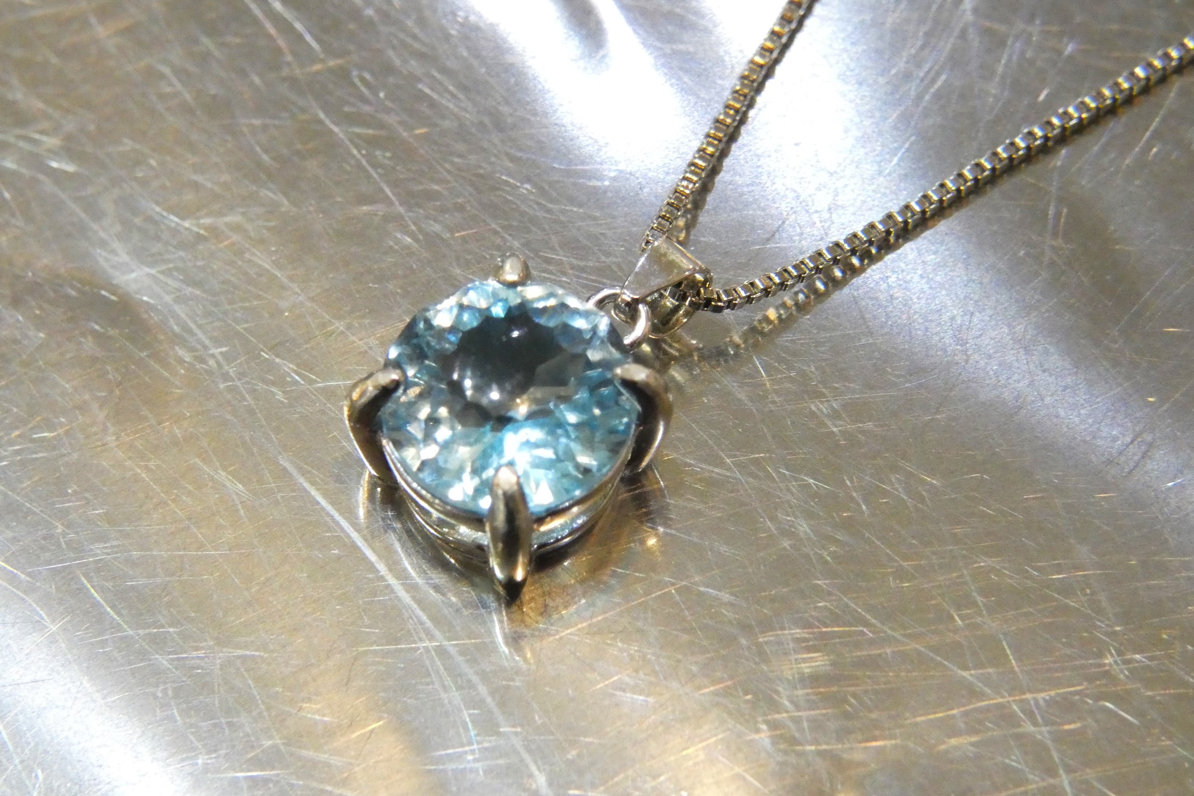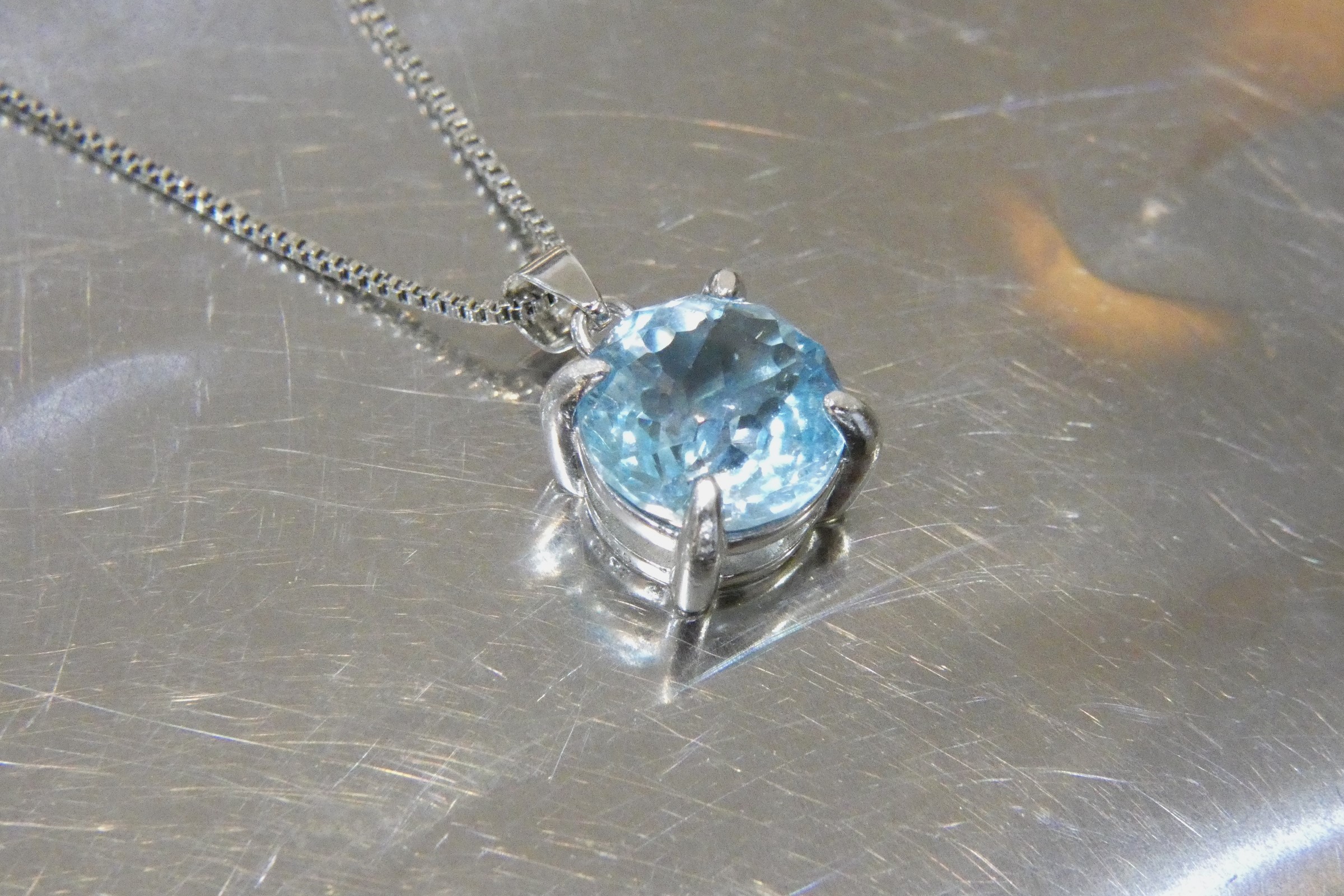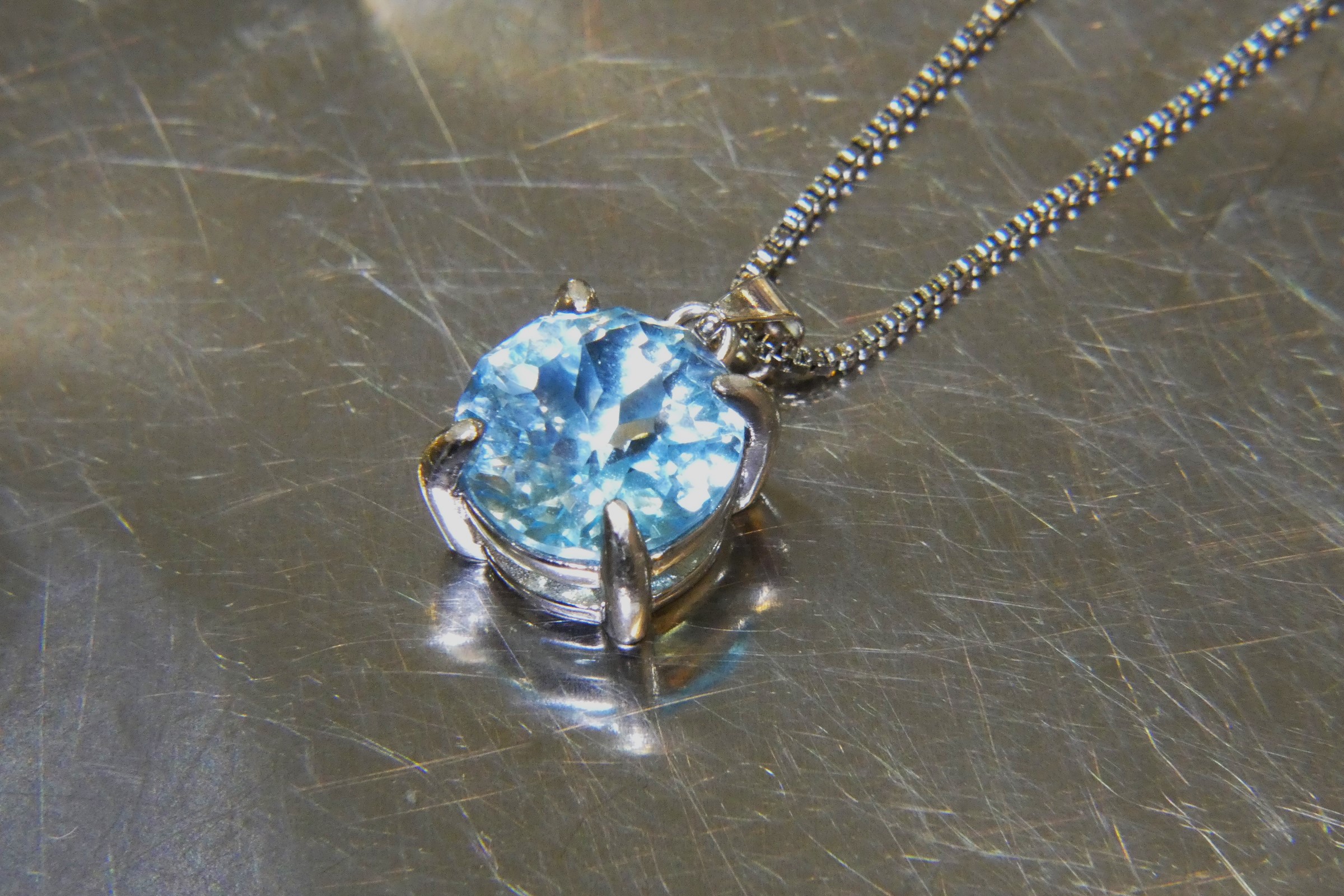 宝石質AAA スカイブルートパーズ 大粒10㎜ ペンダント sa2045