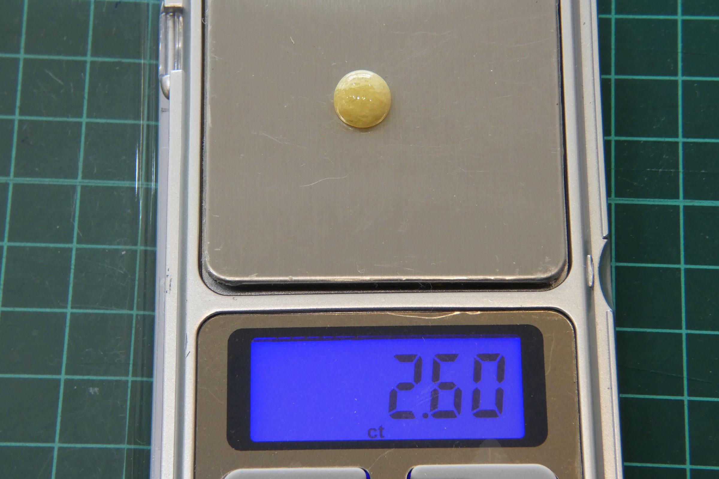 約2.6カラットカラットのラウンドカボジョンカットのゴールデンダンビュライトを