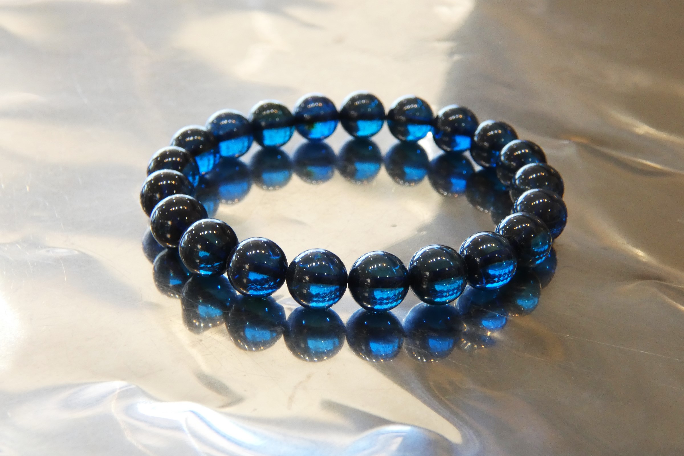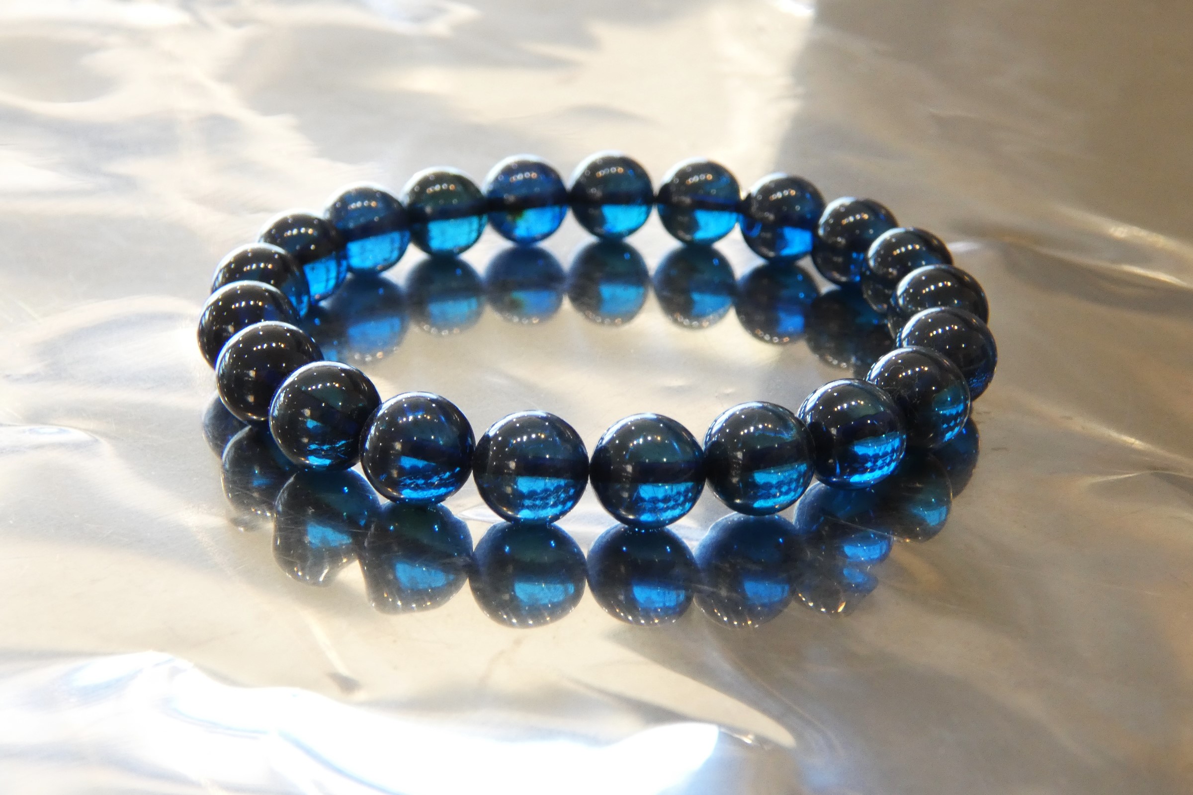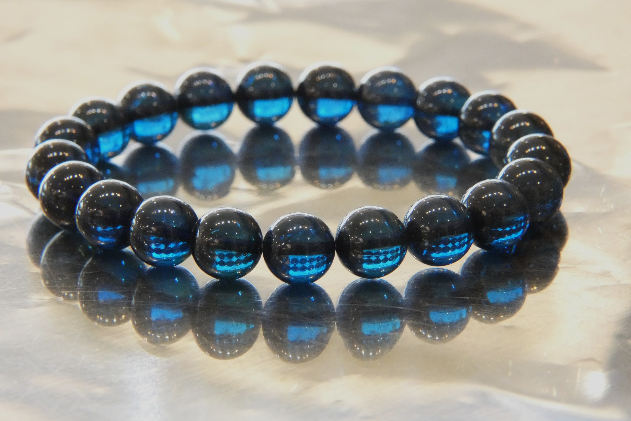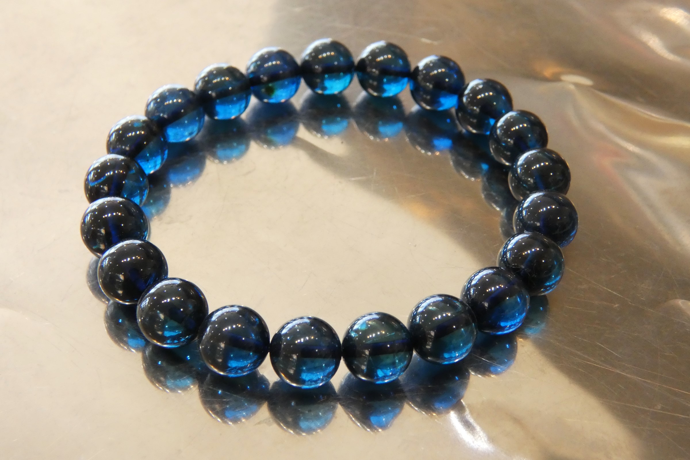 ディープブルーアンバー9.5㎜珠ブレスレット