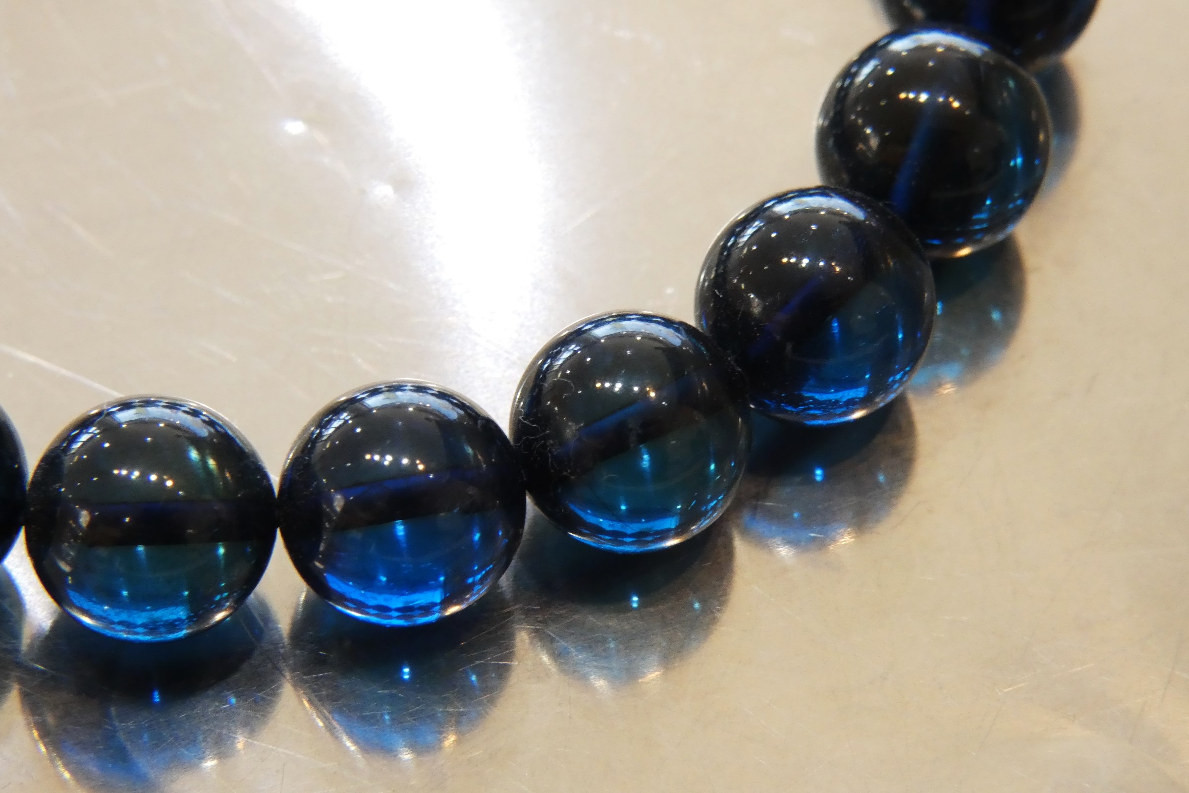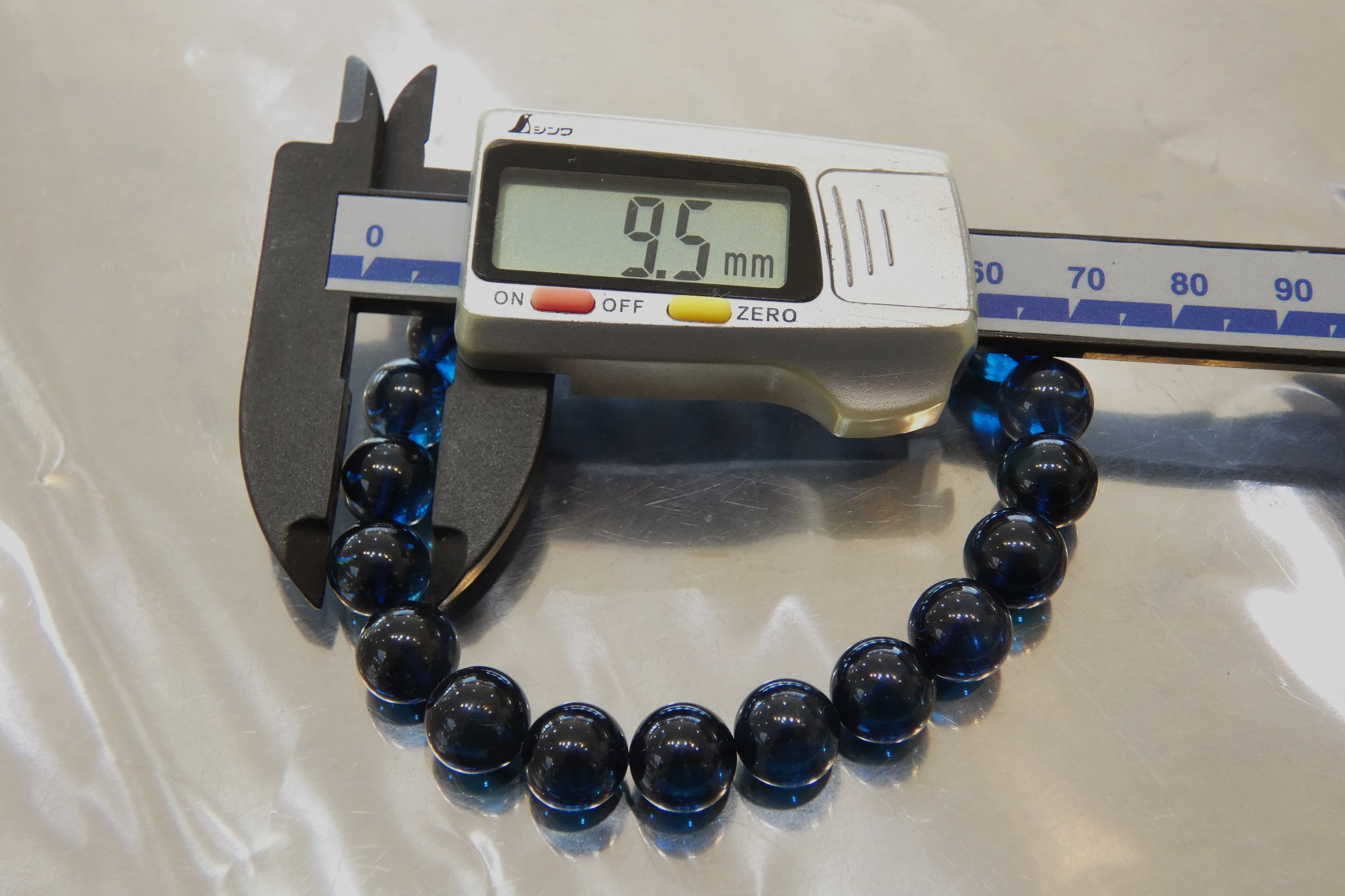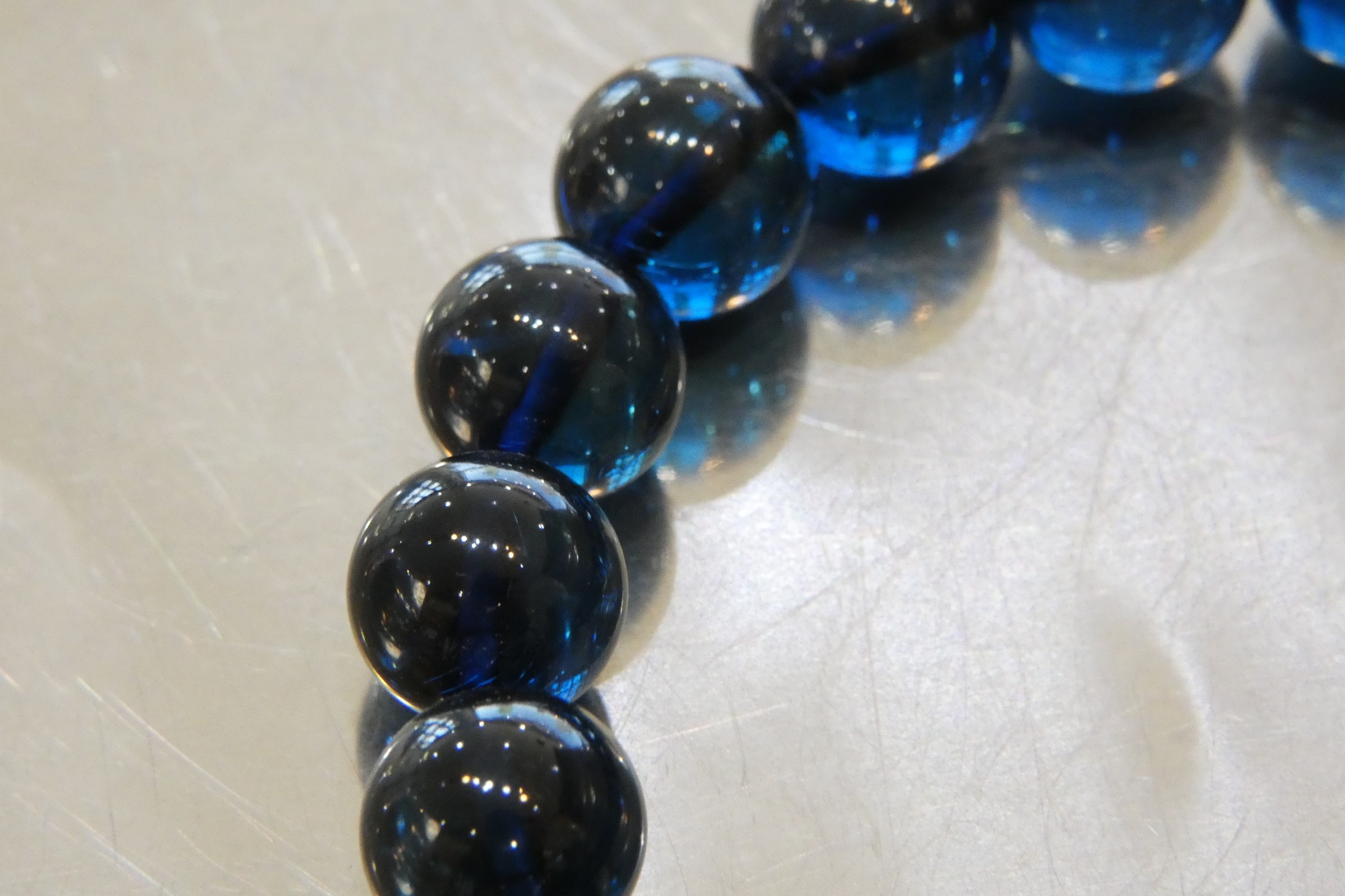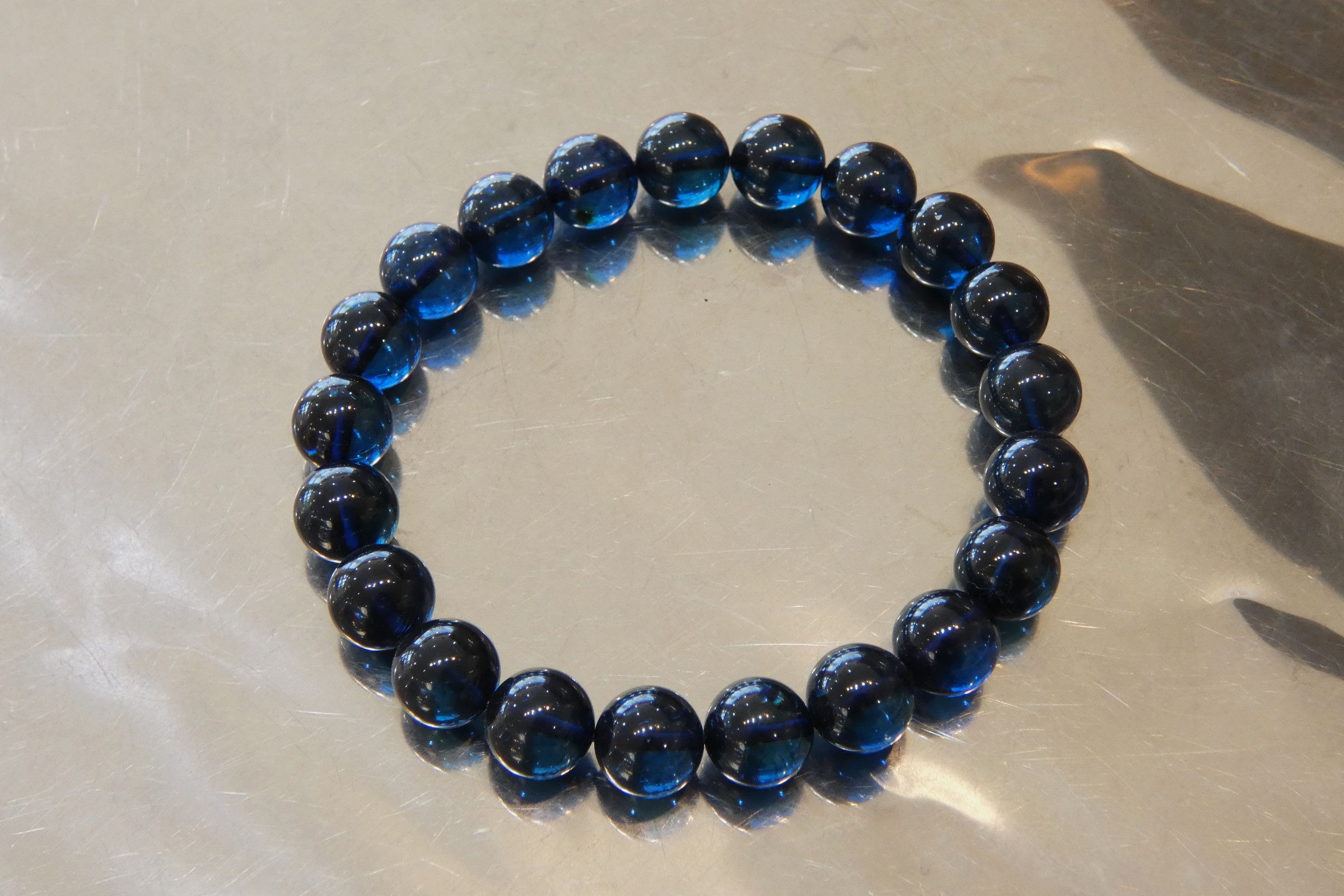 ディープブルーアンバー9.5㎜珠ブレスレット