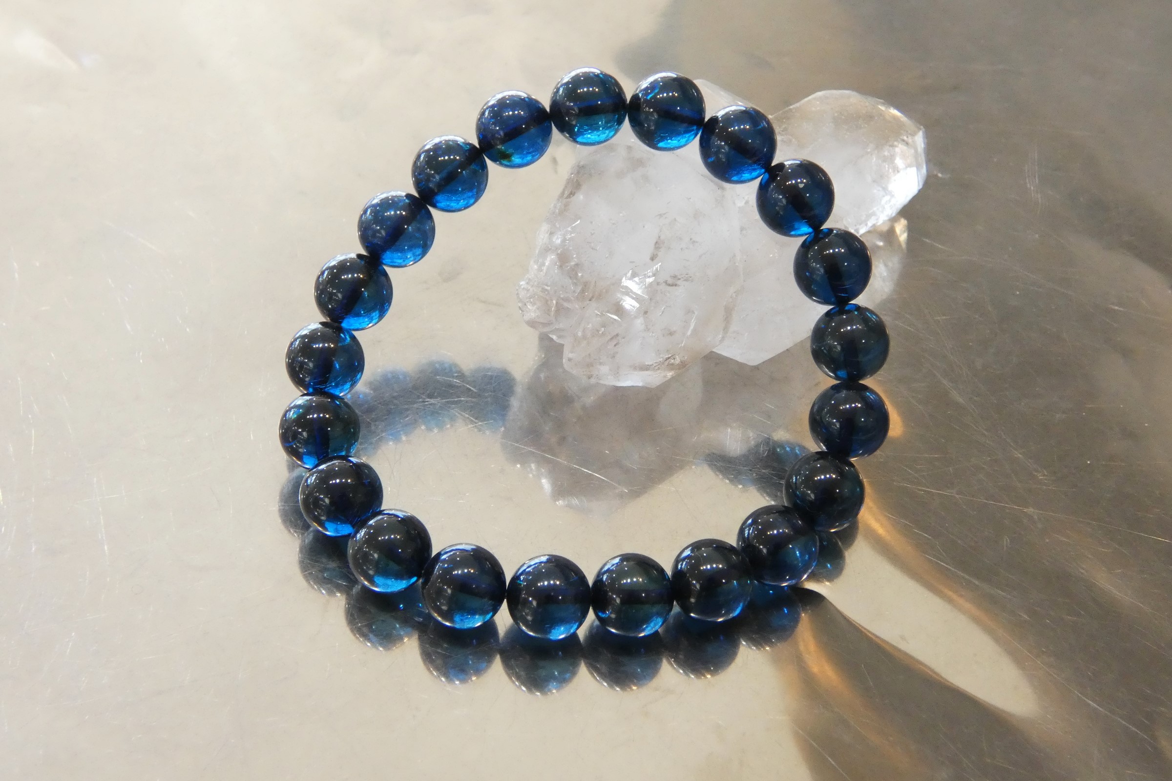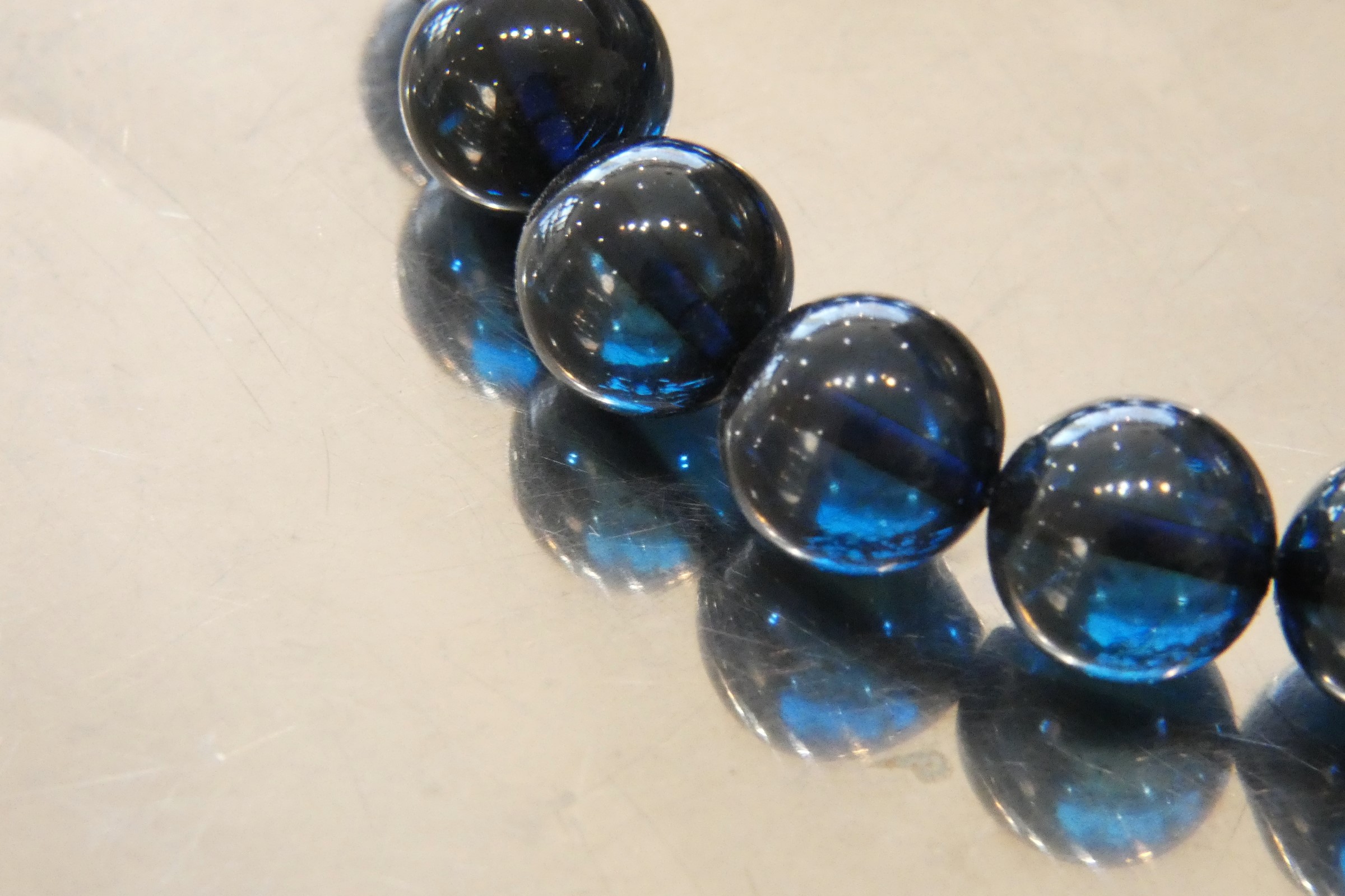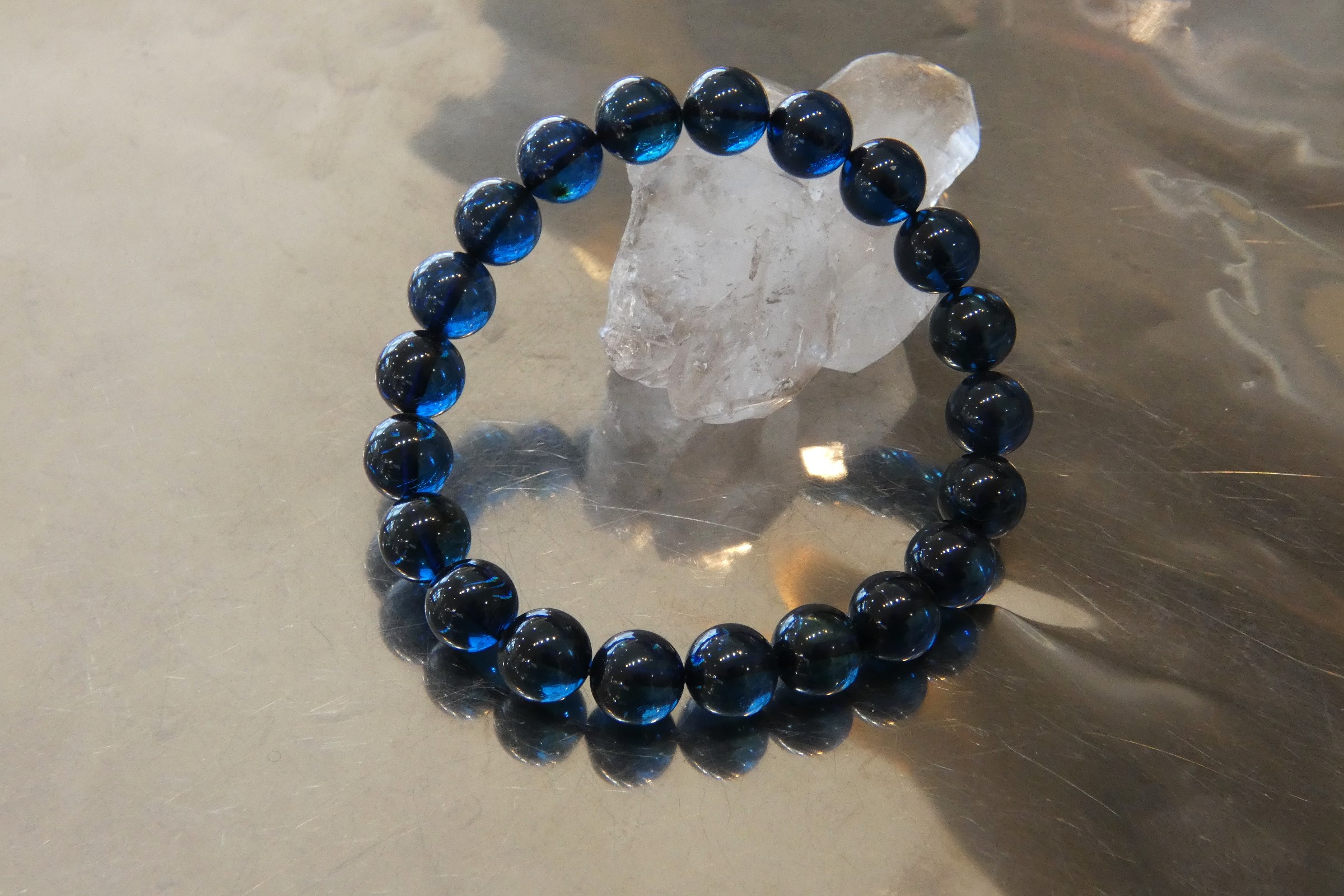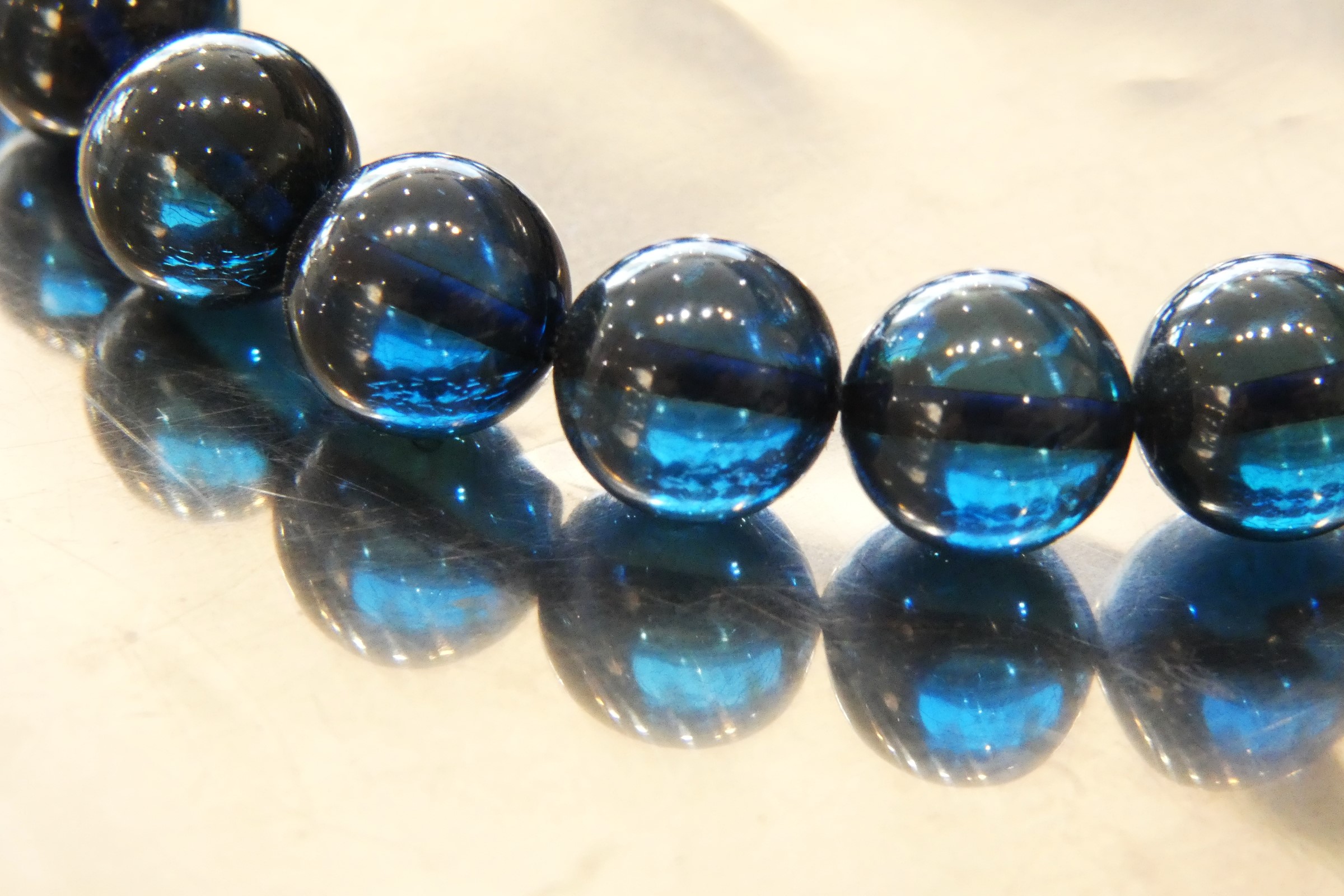 ディープブルーアンバー9.5㎜珠ブレスレット