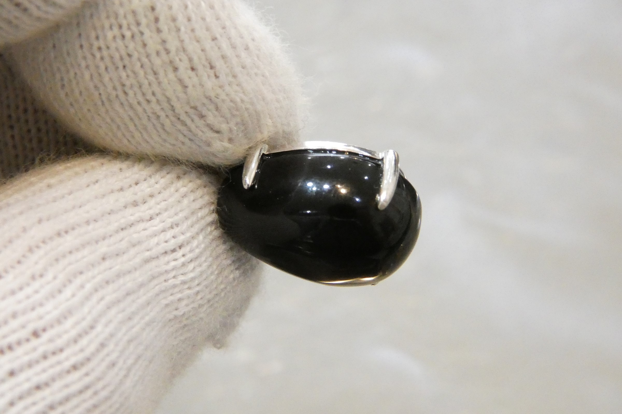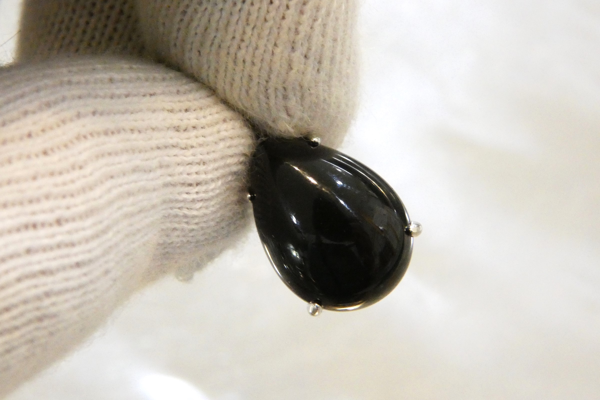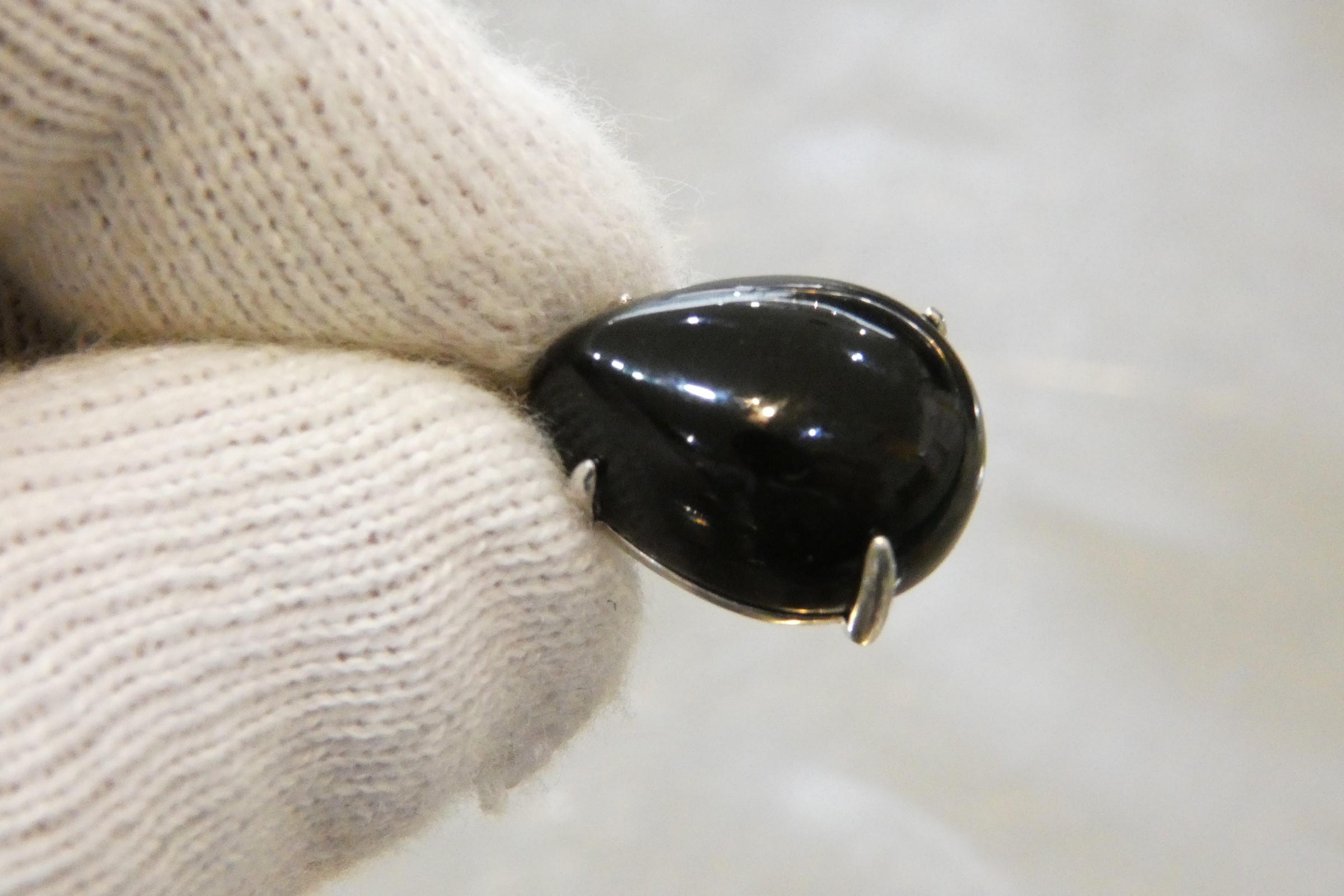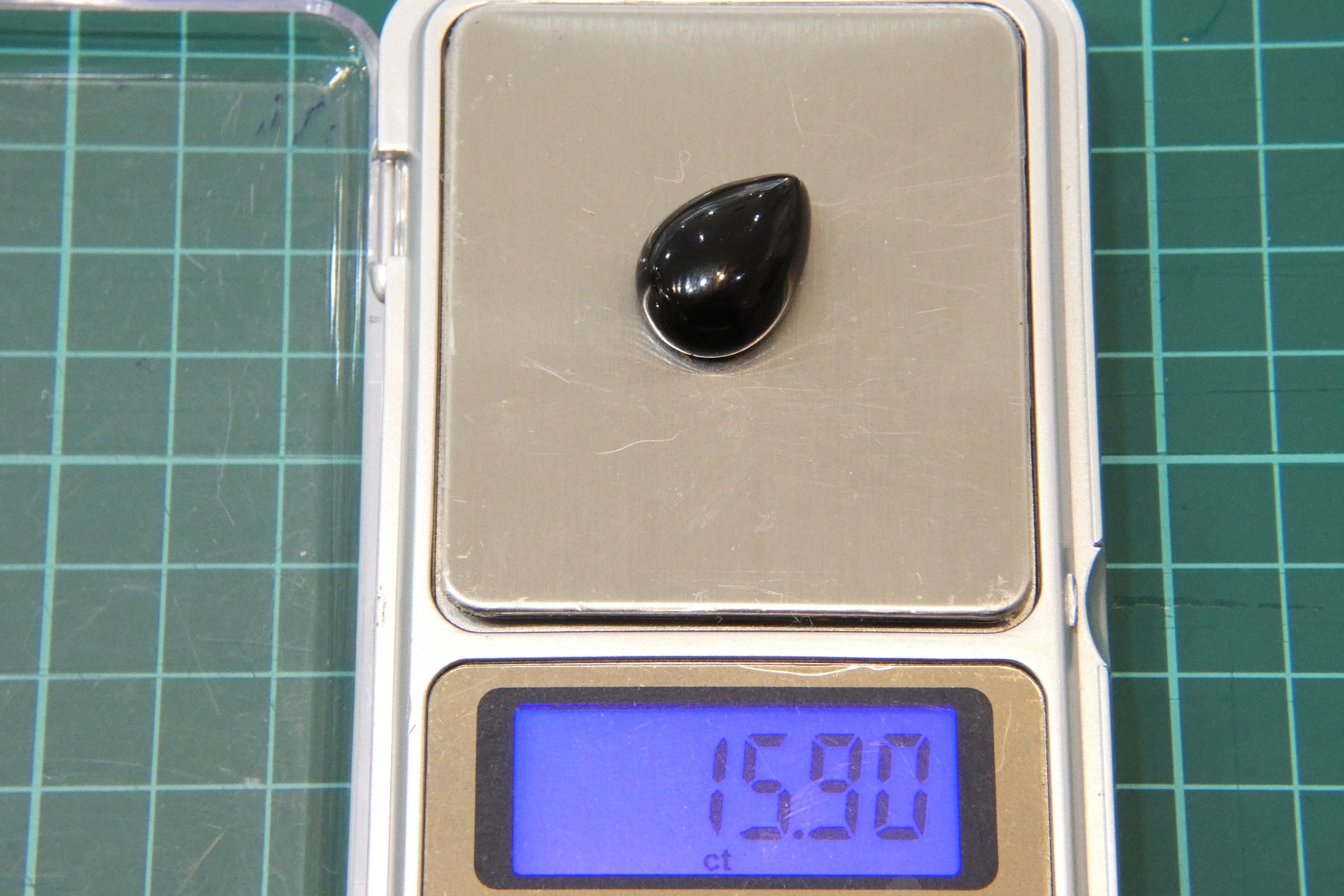 チベット産 約19.5カラットのティアドロップ型モリオン(黒水晶)を