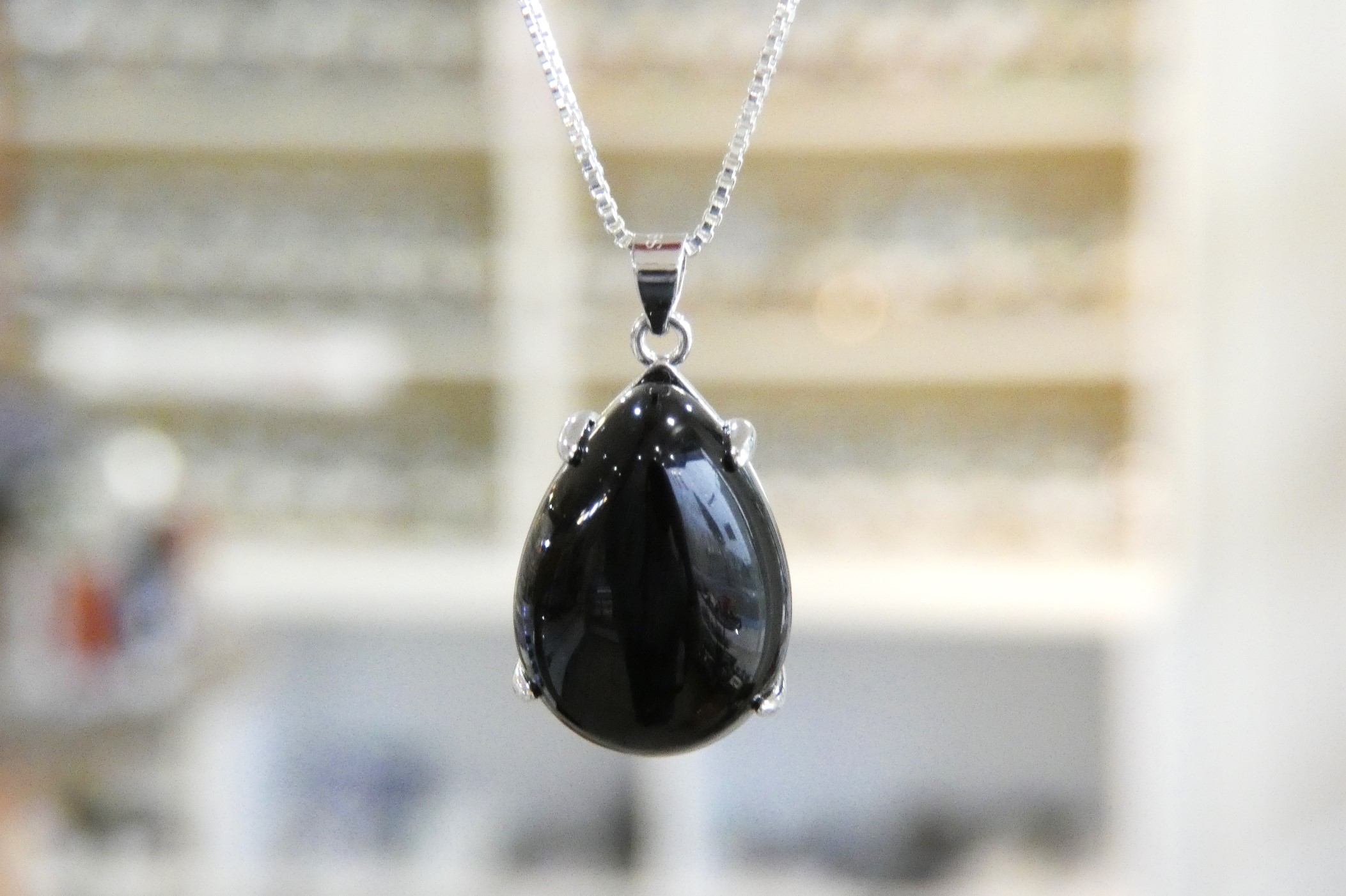 最強の魔除け チベット産 黒水晶モリオン ティアドロップ型ペンダント sa2062